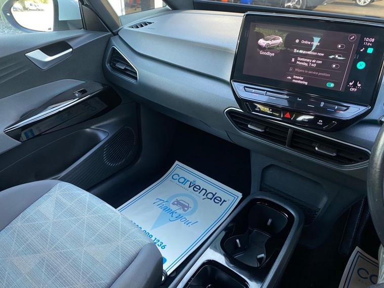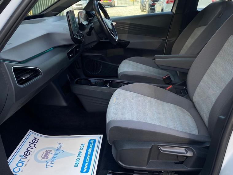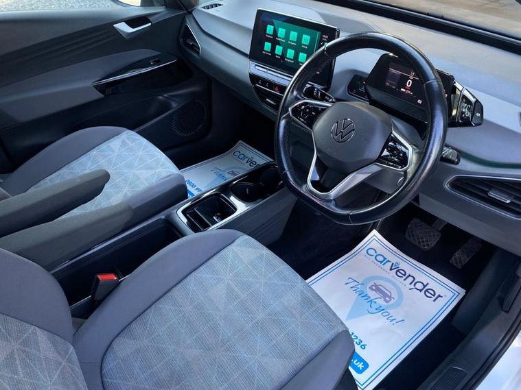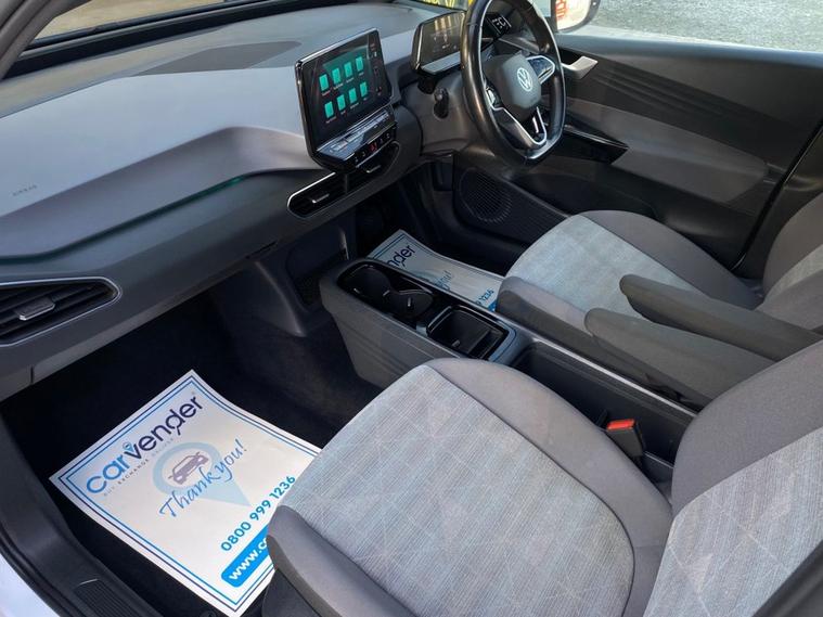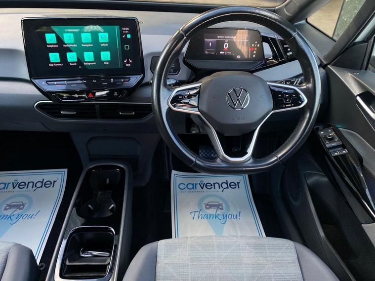 Carvender is presenting the innovative and fully electric 2021 Volkswagen ID.3 Pro Performance 58kWh Life Hatchback 5dr. The 2021 ID.3 is a modern hatchback that delivers cutting-edge technology, smooth electric driving and everyday practicality. The Volkswagen ID.3 is equipped with a 58kWh battery and produces 204 brake horse power through its automatic electric drivetrain. The Life trim level on this Volkswagen ID.3 enhances its modern and minimalist design. This trim level offers a well-balanced set of features including Adaptive Cruise Control, Rear & Front Parking Sensors, Apple car play/Android Auto, Heated Seats for Winter, Air Conditioning for Summer, A Multimedia with Mobile Connection, Navigation System and much more. This Volkswagen ID.3 is in outstanding condition and has been very well maintained. Services have been carried out at the mileages of 11, 5557 and 10342 on 17/09/2025. Dont miss out on the opportunity to own this exceptional Volkswagen ID.3. Contact us today and schedule a test drive or visit our website for home delivery with a 14-day money-back guarantee.