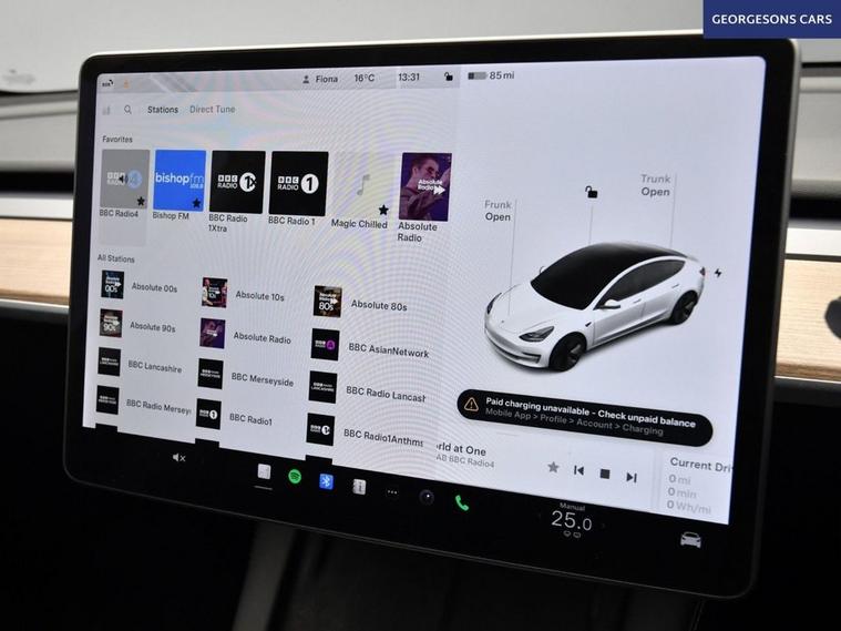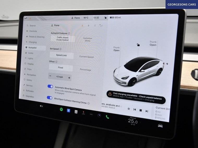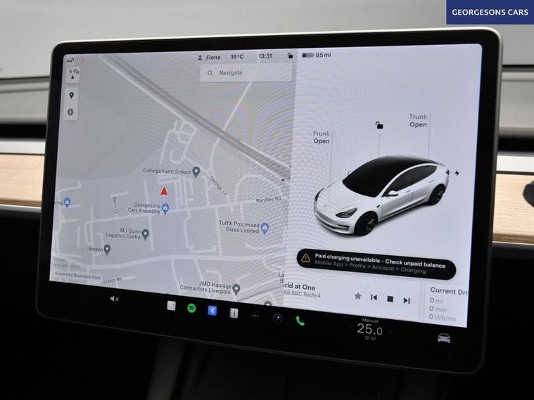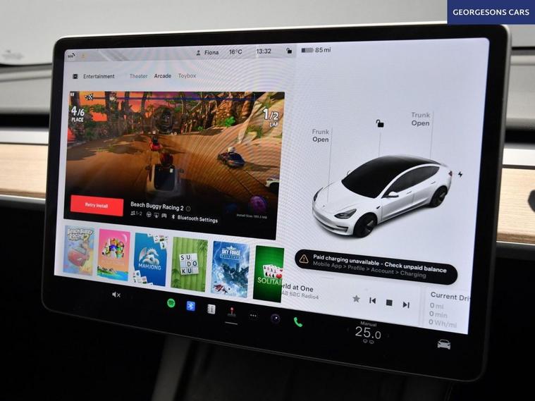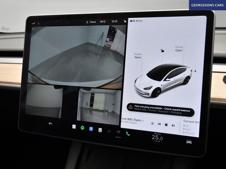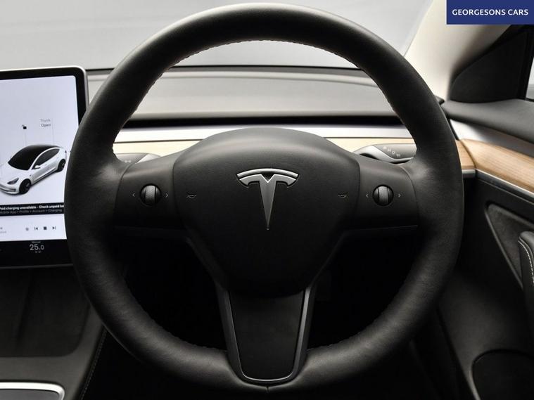 This Tesla Model 3 Standard Range Plus delivers responsive performance from its electric motor with 283hp, achieving 0-62mph in 5.6 seconds and up to 254 miles of WLTP range in this rear-wheel-drive setup with a single-speed automatic transmission. The panoramic roof enhances the airy cabin feel, while the premium interior offers modern luxury. This Model 3 is equipped for effortless connectivity with Bluetooth, DAB radio, and integrated sat nav through the 15-inch touchscreen. The 360-degree camera system and reverse camera, paired with parking sensors, provide comprehensive visibility for easy maneuvering. Dual-zone climate control and air conditioning maintain optimal comfort, complemented by heated seats and electric heated seats for all-season warmth. Cruise control with speed limiter and adaptive capabilities ensure relaxed driving, while lane assist and blind spot assist enhance safety on every route. Selectable drive modes allow customization from chill to standard for tailored efficiency and dynamics. The sleek four-door saloon design includes a 425-litre boot for practicality.