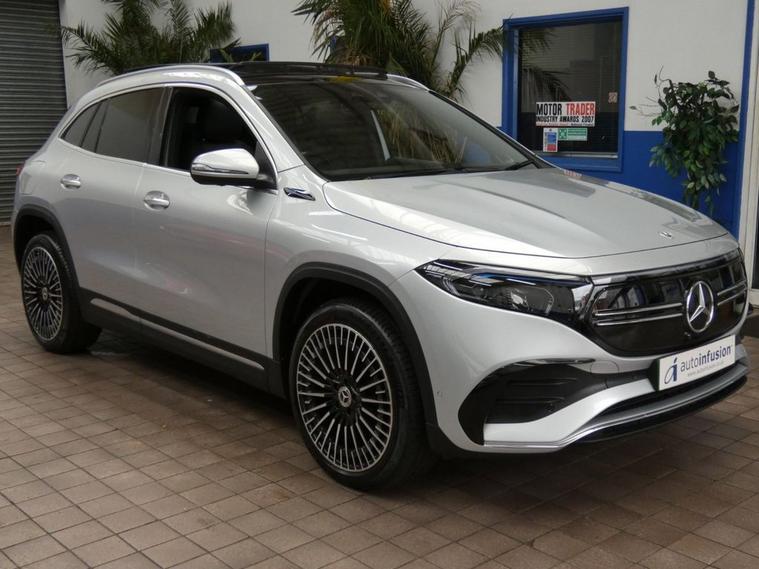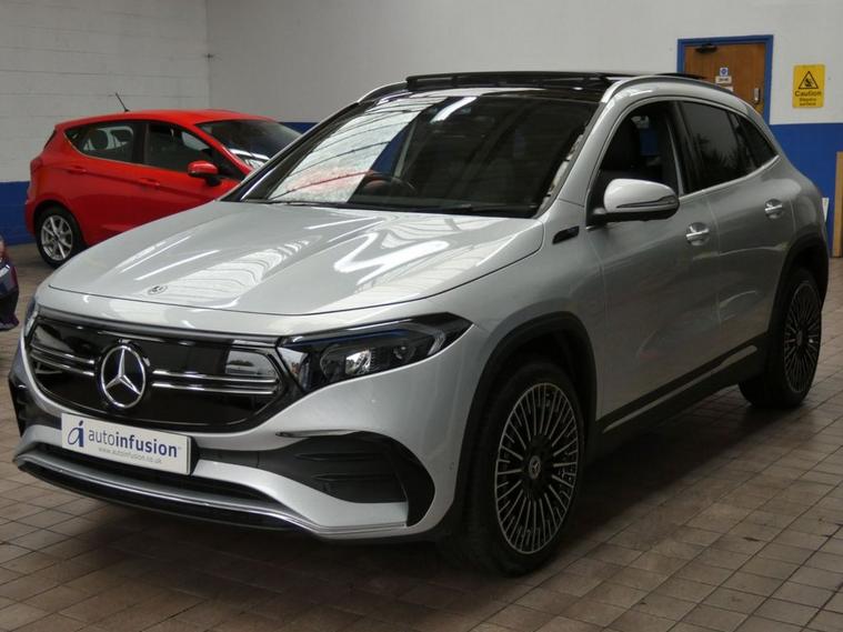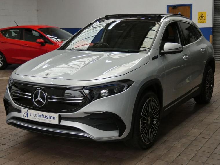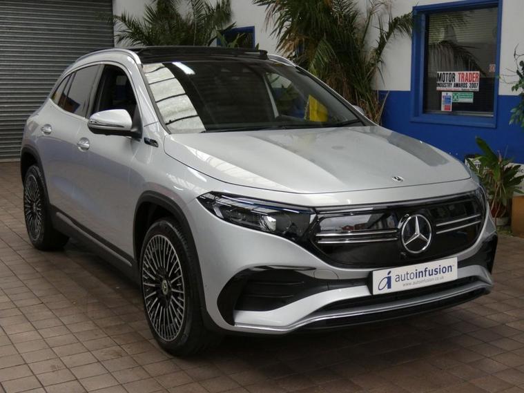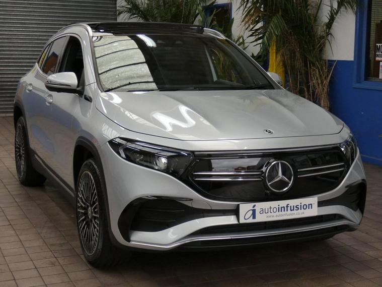 This 2021 Mercedes Benz EQA 250 AMG Line (Premium Plus) has had only one owner from new and boasts a clear vehicle history. 2 Mercedes services to 28, 832 miles Aug 2025. Mot till Dec 2025. As an all electric vehicle, it offers a compelling blend of luxury and sustainable motoring. The AMG Line trim enhances its sporty appeal, while the Premium Plus designation signifies a high level of specification, including a panoramic sunroof, 360-degree camera, Heads-Up Display, and Smartphone integration android apple carplay, part leather interior, heated seats, parking sensors. With a total battery capacity of 73 kWh, this EQA can achieve a maximum range of 252 miles when new, making it suitable for both daily commutes and longer journeys. Charging is convenient, with a full charge at home using a 7kW charger taking approximately 11 hours and 6 minutes, and rapid public charging can replenish the battery from empty to 80% in as little as 34 minutes. These charging capabilities, combined with its impressive range and single owner provenance, position this EQA as an excellent choice for those seeking an efficient and well maintained electric vehicle. Autoinfusion Ltd, is a family run business with over 30 years motoring experience. On our website you will find our vehicles are generally advertised with upto 100 exterior and interior pictures, 360 interior images, exterior panoramic views and web video showcasing our stock. As an AA approved garage, prior to sale, the majority of our vehicles are inspected by an AA trained technician and pass a full 128 multi-point AA inspection, these cars are highlighted on our website with the AA logo. Please note AA inspections are also available on request if the vehicle has not yet been inspected. All of our stock is constantly price checked ensuring you pay and receive the best package. You will also find details of special promotions on our website. Contact us to book an appointment for a viewing and test drive. We can conduct a live viewing of the vehicle to your mobile device or send you a personalised video highlighting the key features or anything else you may require, which can be viewed in your own time. With our Finance options we can provide class leading packages and rates. We highly recommend you reserve this car on-line , please visit dealer's website or call one of our sales specialists for more information. We look forward to welcoming you to Autoinfusion.