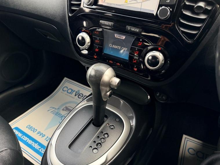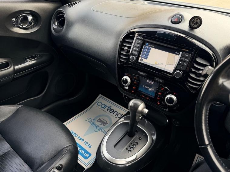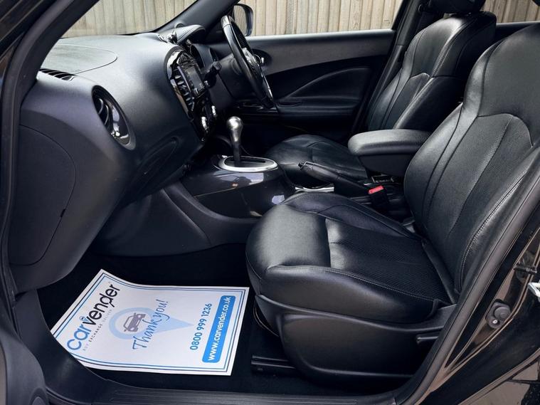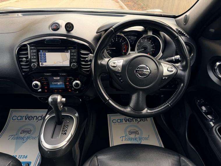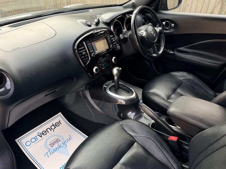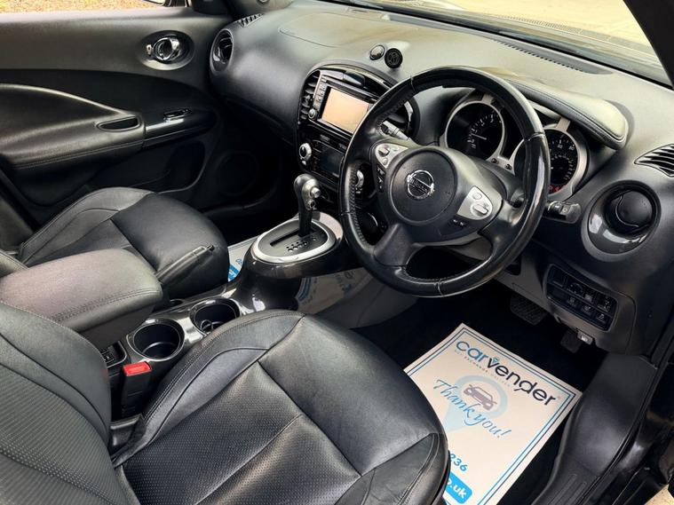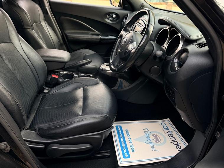 Carvender is presenting the compact and sporty 2019 Nissan Juke 1.6 Tekna XTron 5dr. The 2019 Juke is a stylish crossover that delivers urban versatility, bold design, and modern driving technology. The Nissan Juke is equipped with a 1.6 litre petrol engine and produces 117 brake horsepower. The Tekna trim level on this Nissan Juke enhances its sleek and contemporary design. This trim level offers a well-balanced set of features including Cruise Control, Reverse Camera with 360 View, Leather Heated Seats, Satellite Navigation, Air Conditioning, a Multimedia Infotainment System with Mobile Connectivity, and much more. This Nissan Juke is in very good condition and has been very well maintained. We have Full Service History in the file. Services have been carried out at the mileages of 13714, 19750, 25276, 33020, 40383 and 46625 on 19/05/2025. Dont miss out on the opportunity to own this exceptional Nissan Juke. Contact us today and schedule a test drive or visit our website for home delivery with a 14-day money-back guarantee.