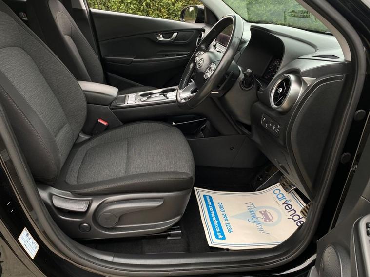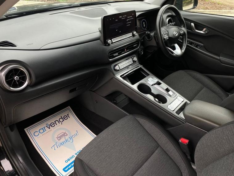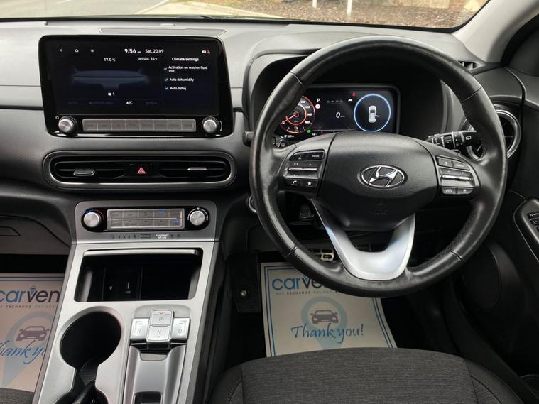 At Carvender we are presenting the stunning all-electric 2021 Hyundai Kona 64kWh Premium 5dr. This Hyundai Kona is a top-tier compact SUV designed for modern living. This Hyundai Kona is powered by a 204 Brake Horse Power (BHP) motor and offers eco-friendly seamless blend of efficiency, style, and cutting-edge technology. The Hyundai Kona is equipped with a 64kWh battery which delivers a range of up to 300 miles in single charge. This Hyundai Kona is in eye-catching colour which features full LED headlights and sleek body lines for a sophisticated look. This Hyundai Kona is equipped with luxurious cabin with premium materials and modern features including Adaptive Cruise Control, Lane Keeping Assist, Reversing Camera, Rear & Front Parking Sensors, Heated Seats, SatNav, Apple CarPlay/Android Auto, Mobile Connection and much more. We have Full Hyundai Main Dealer Service History in the file which have been carried out at the mileages of 10527, 18837, 25455 and 31941 on 07/05/2025. Contact us today to schedule a test drive or visit our website for home delivery with 14 days money back guaranty and enjoy the future of driving with zero emissions, a refined ride, and high-end comfort.