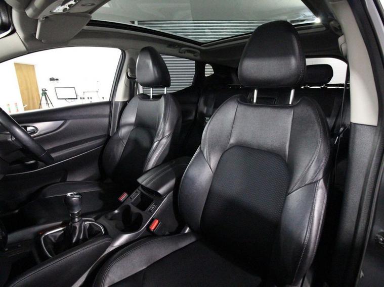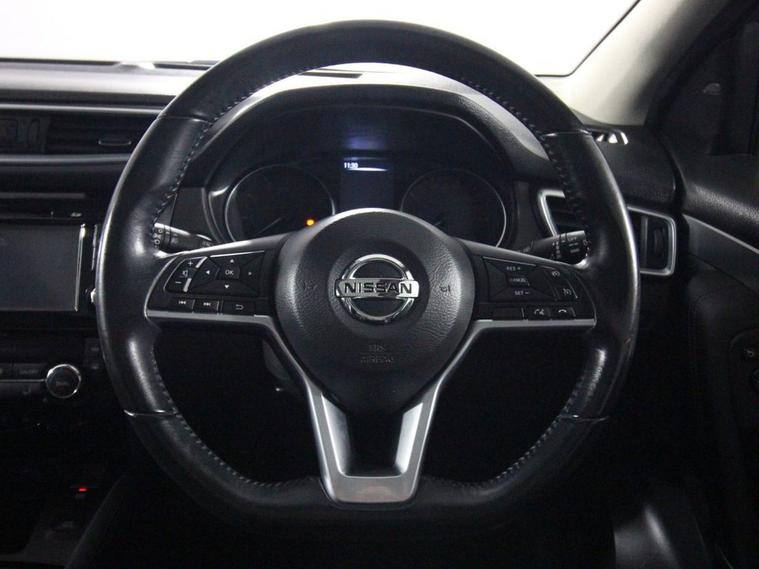 Full service history with 6 services. Last serviced at 55, 525 miles in April 2025. This 2017 Nissan Qashqai 1.2 DIG-T Tekna is a premium-equipped SUV powered by a 115ps Euro 6 petrol engine with manual transmission. It features striking 19-inch alloy wheels, matt silver roof rails, and privacy glass, alongside LED headlights with high beam assist, adaptive front lighting, LED signature daytime running lights, and LED turn signals on the door mirrors. Chrome accents on the glass surrounds and interior door handles add a refined touch. Inside, the Tekna trim offers dual-zone climate control, leather D-shaped steering wheel, leather gear lever, and manually lumbar-adjusted driver and passenger seats with height adjustment. The cabin features ambient lighting, a carbon graphite dash trim, and the comprehensive NissanConnect Evo touchscreen navigation and entertainment system with Bluetooth, smartphone app integration, and an 8-speaker Bose premium audio system. Convenience includes one-touch electric windows, electric auto-folding mirrors, front and rear parking sensors, rear view camera, intelligent key with start push button, and parcel shelf with stow function. Safety is extensive, including dual-stage airbags with curtain and driver knee airbag, intelligent emergency braking, lane departure warning, traffic sign recognition, blind spot monitoring (part of Smart Vision Pack), hill start assist, tyre pressure monitoring, electronic stability program with brake assist, and Nissan chassis controls. The Tech Pack and Executive Pack enhance the driving experience with features like intelligent park assist, safety shield, and underbody vortex generators. The vehicle comes secured with a Thatcham Category 1 alarm for added protection. Safety is comprehensive with dual-stage front, side, and curtain airbags, intelligent emergency braking, lane departure warning, traffic sign recognition, tyre pressure monitoring system, hill start assist, ABS with EBD and brake assist, and electronic stability control with chassis controls. Additional highlights include the Smart Vision Pack, puncture repair kit, synthetic leather door handles with contrast stitching, and Thatcham Category 1 alarm, combining style, technology, and safety.