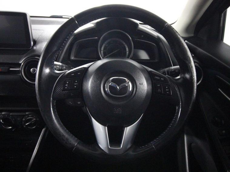 Comprehensive service history with 12 services. Last serviced at 60, 454 miles. This 2015 Mazda Mazda2 1.5 SKYACTIV-G SE-L hatchback delivers a lively and efficient driving experience with its 90ps Euro 6 petrol engine paired with a manual gearbox. It features 15-inch alloy wheels, body-coloured door mirrors with integrated indicator lights, and a rear roof spoiler, complemented by halogen headlights with coming/leaving home function and front fog lights. The exterior design balances sportiness and practicality for urban and suburban driving. Inside, the SE-L trim offers a well-equipped cabin with a 7-inch colour touchscreen multimedia display, integrated Bluetooth, AM-FM DAB radio with CD and MP3 compatibility, AUX and dual USB inputs, and a multifunction leather steering wheel with audio and Bluetooth controls. Comfort features include manual height, slide, and recline adjustments for the drivers seat, cruise control, air conditioning, leather-wrapped handbrake and gear knob, and front and rear electric windows with one-touch auto up/down on the drivers side. Safety is comprehensive with dual front, side, and curtain airbags, lane departure warning, Smart City Brake Support, ABS with electronic brakeforce distribution and emergency stop signaling, dynamic stability control with traction control, hill hold assist, ISOFIX mounts on the outer rear seats, tyre pressure monitoring, and a Thatcham Category 1 alarm and immobiliser. Practical touches include rear seat headrests, a seatbelt reminder, luggage compartment light, and tyre repair kit.