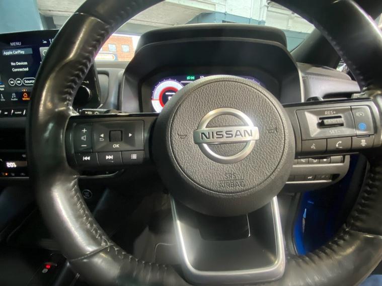 This 2022 Nissan Qashqai DIG-T Tekna is a superb example, boasting a full dealership service history and having had only one owner from new. This Euro 6 compliant model features a responsive 1.3L Petrol Hybrid engine, offering an efficient and smooth driving experience. The Tekna trim level comes equipped with desirable features such as Intelligent Key with keyless entry, allowing for effortless access. Further enhancing your journey, this Qashqai includes the Glass Roof Pack, complete with a fixed panoramic sunroof, creating a bright and airy cabin. Comfort is paramount with automatic dual zone climate control and front heated seats, ensuring a pleasant environment in any weather. Parking is made simpler with front parking sensors. The vehicles performance is notable, achieving 0-60mph in just 9.2 seconds, and its low insurance group rating indicates it is more economical to run than many similar vehicles.