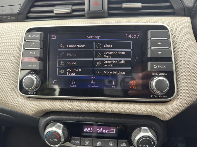 Our 2019 Nissan Micra IG-T Acenta boasts a full service history, with the 1st Service 15/09/2020 @ 6, 622 Miles, 2nd Service 11/05/2022 @ 25, 077 Miles, 3rd Service 21/02/2024 @ 40, 112 Miles, 4th Service 18/09/2024 @ 42, 682 Miles, and comes with a clear vehicle history check. This one owner vehicle is powered by an efficient 1.0L Petrol engine, meeting Euro 6 emissions standards. Key features include Nissan Intelligent Key with Engine Start Button for keyless entry, automatic air conditioning with climate control, rear electric windows, an auto dimming rear view mirror, and a rear view camera with parking assistance sensors. This Nissan Micra is in a low insurance group, making it an economical choice for many drivers. Its low CO2 emissions also indicate a more environmentally friendly and potentially less expensive driving experience compared to similar vehicles. A 12 month MOT will be provided on purchase, and the vehicle is covered by a 3 month warranty, offering peace of mind.