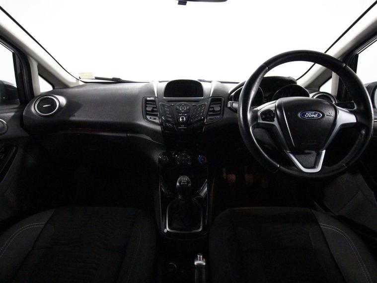 Service history with 6 services. Last serviced at 75, 737 miles. This 2015 Ford Fiesta 1.25 Zetec is a well-rounded, efficient hatchback powered by an 82ps Euro 6 petrol engine with manual transmission. It features attractive 15-inch 5x2 spoke alloy wheels and a body-coloured exterior with chrome belt line finisher and chrome-accented front grille. The exterior includes LED daytime running lights, front fog lights with chrome bezels, tinted glass, heated door mirrors with integrated indicators, and a rear spoiler for added style. Inside, the Zetec trim offers comfort and convenience with manual air conditioning, leather-trimmed handbrake and gear knob, and a leather-trimmed multifunction three-spoke steering wheel. The cabin includes Ford SYNC with Bluetooth hands-free phone, AM-FM CD audio system with DAB digital radio, USB and AUX connections, and voice control for easy multimedia operation. Seating is in front comfort style with manual height and fore-aft adjustments and ISOFIX child seat brackets for added family safety. Safety features encompass ABS with electronic brakeforce distribution and emergency brake assist, electronic stability programme with traction control, hill start assist, multiple airbags including curtain and driver knee airbag, emergency assistance, tyre pressure monitoring system, and a MyKey programmable speed limiter. Additional practical touches include ambient footwell lighting, front and rear electric windows with one-touch driver control, remote central locking, and a tyre repair kit.