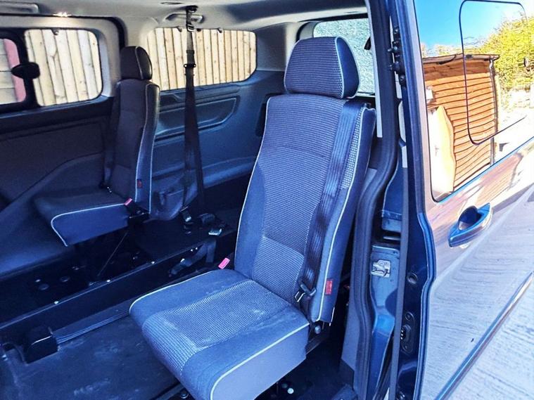 This GM Coachworks converted Ford Transit Custom Wheelchair Accessible Vehicle (WAV) has 4 Seats (2 Front and 2 Rear). Equipment includes Wheelchair Ramp, Air Conditioning, Electric Front Windows, Electric Adjustable Wing Mirrors, Power Steering, Remote Central Locking, Tinted Rear Windows.