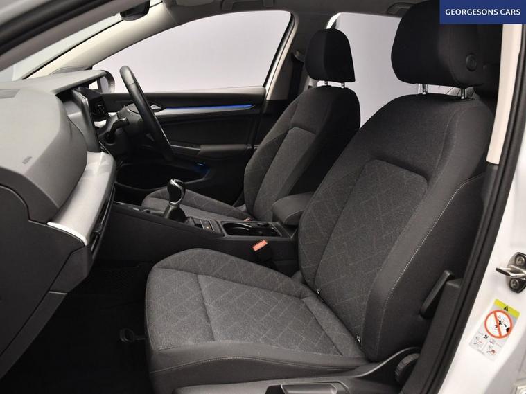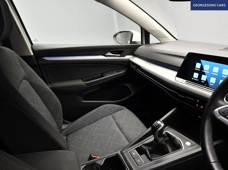 The Volkswagen Golf 1.5 TSI Life combines a responsive 1.5-litre turbo petrol engine with 130hp, delivering 0-62mph in 9.2 seconds and up to 51.4mpg in this front-wheel-drive setup with a precise 6-speed manual transmission. The Life trim offers a refined blend of style and tech with 16-inch alloy wheels and a modern interior for versatile family motoring. With four services, including three at VW main dealers, this Golf is in excellent condition. Navigate effortlessly with integrated satellite navigation, Apple CarPlay, Bluetooth, and DAB radio, ensuring seamless connectivity on every journey. Parking is a breeze thanks to the parking sensors, providing confidence in tight spaces. Stay comfortable with climate control and ambient lighting, creating a sophisticated interior atmosphere year-round. Adaptive cruise control with speed limiter and lane assist enhance safety and relaxation on highways. The spacious five-door hatchback design includes a 380-litre boot for practicality. C