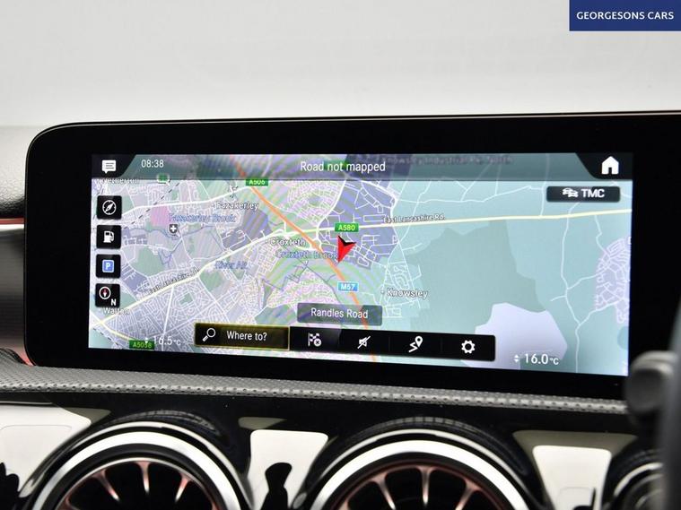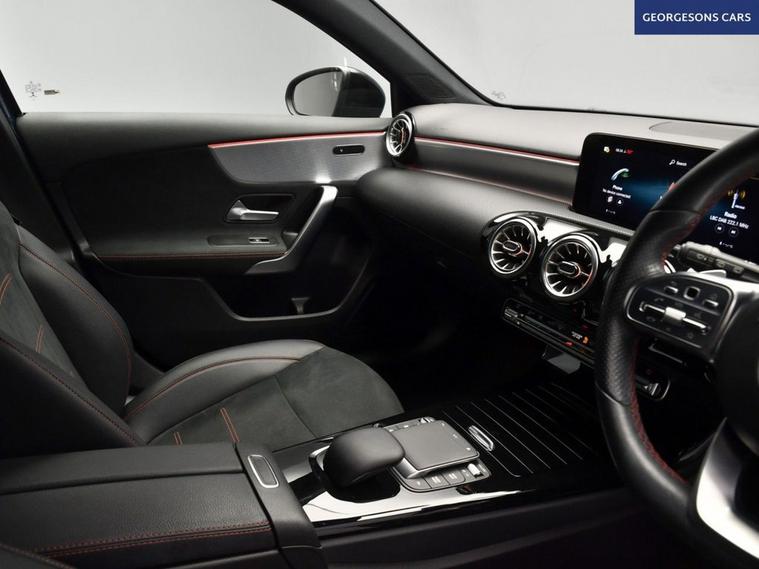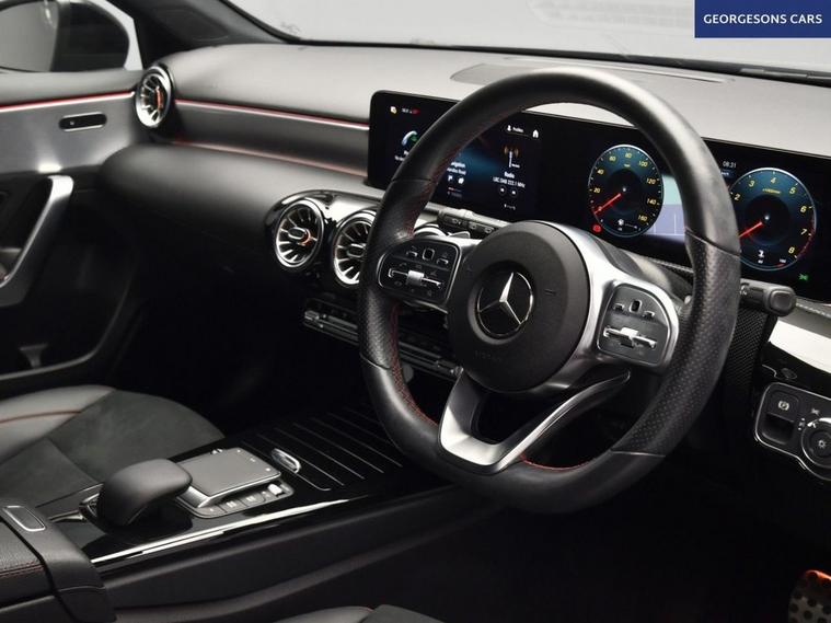 This Mercedes-Benz A-Class 1.3 A180 AMG Line (Executive) combines a responsive 1.3-litre turbo petrol engine with 136hp, delivering 0-62mph in 9.2 seconds and up to 52.3mpg in this front-wheel-drive setup with a smooth 7-speed DCT automatic transmission. The AMG Line (Executive) trim enhances the sporty appeal with 17-inch alloy wheels, premium features, and a dynamic chassis for refined performance. With one owner and two services, this A-Class is in excellent condition. Navigate effortlessly with integrated satellite navigation, Apple CarPlay, Bluetooth, and DAB radio, ensuring seamless connectivity on every journey. Parking is a breeze thanks to the reverse camera and parking sensors, providing clear visibility and confidence in tight spaces. Ambient lighting creates a sophisticated interior atmosphere, while dual-zone climate control offers personalized comfort year-round. Stay warm with heated seats, and selectable drive modes provide tailored performance, whether for efficiency or dynamic driving. The spacious five-door hatchback design includes a 370-litre boot for practicality.