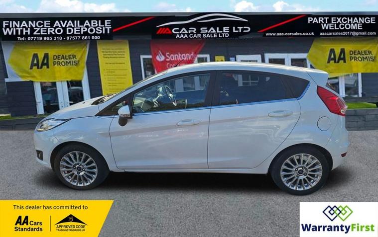 **AAA CAR SALES DARLINGTON LTD HAVE THE PLEASURE TO PRESENT THIS FORD FIESTA 1.0T EcoBoost Titanium Hatchback 5dr Petrol Manual Euro 5 (s/s) (100 ps) IN FROZEN WHITE PAINTWORK, SERVICE HISTORY - SERVICED AT 8K, 14K, 21K, 37K, 53K, 58K, 63K AND SERVICED BY OUR TEAM AT 81K. ALL OUR CARS GO THROUGH 72 POINT INSPECTION, ALL OF OUR CARS COME WITH 12 MONTHS AA BREAKDOWN COVER, FRESH MOT WITHOUT ADVISORIES, INTERIM SERVICE, HPI CHECKED VIA EXPERIAN, 3 MONTHS WARRANTY WITH THE OPTION TO UPGRADE ***AUTOTRADER CUSTOMER SERVICE AWARD 2019, 2020, 2021, 2022, 2023 and 2024 YEAR ON YEAR***, WE ARE OPEN 7 DAYS A WEEK FOR YOUR CONVIENIENCE, CALL 01325950841 OR EMAIL US AT hello dealer's website or visit our website dealer's website , Service history, Clean bodywork, Cloth interior - Clean Condition, Tyre condition good, YOU CAN BUY WITH FULL CONFIDENCE FROM AAA CARS CHECK OUR AUTOTRADER REVIEWS FOR FULL PEACE OF MIND,
