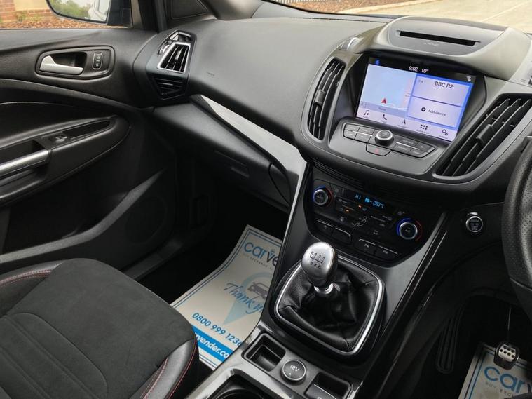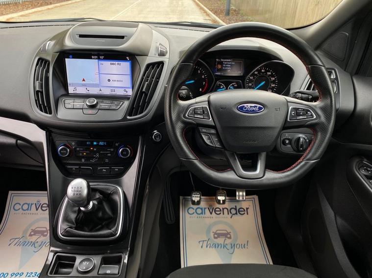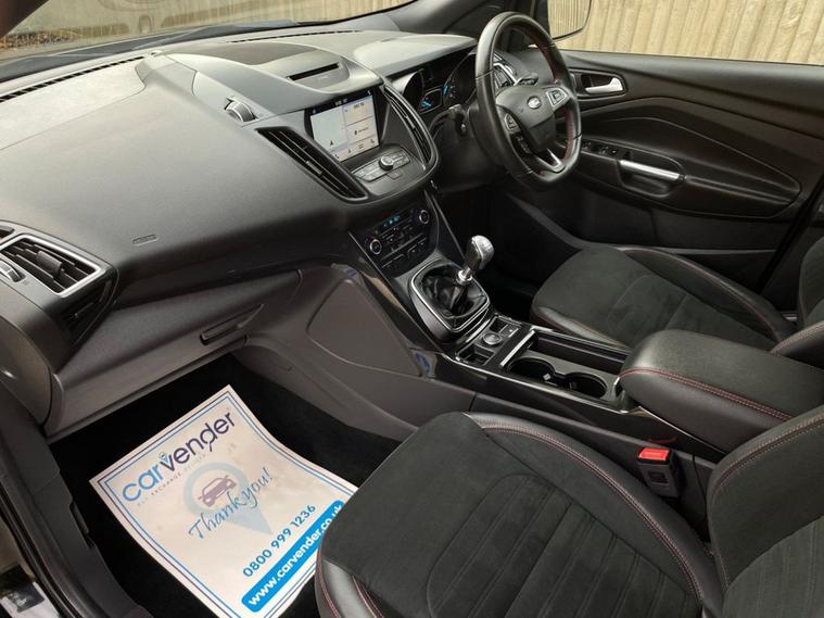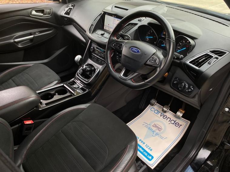 At Carvender we are presenting the 2019 Ford Kuga 1.5T EcoBoost GPF ST-Line SUV 5dr. The 2019 Ford Kuga is a perfect SUV that combines robust performance with sophisticated design and advanced technology. This Kuga is equipped with a 1.5 litre EcoBoost engine that delivers an impressive 150 brake horsepower. The Ford Kuga stands out with its bold and athletic exterior. The sleek lines, prominent grille, and stylish alloy wheels give it a commanding road presence. This Kuga comes with advanced features including Front and Rear Sensors with Assist, Half Leather Seats, Cruise Control, SatNav, Infotainment System, Auto Parking and much more. Please refer to advert photos for more features. This Kuga has been very well maintained and comes with Full Dealer Service History. Services have been carried out at the mileages of 11, 6109, 13159, 21751, 29297, 35708 and 42838 on 23/06/2025. Only 1 Owner from brand new. Do not miss the opportunity to own this beautiful and desirable car. Contact us today to schedule a test drive or visit our website for home delivery with 14 days money back guarantee.