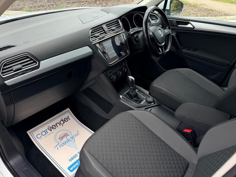 At Carvender we are presenting The 2018 Volkswagen Tiguan 1.4 TSI SE Navigation 4Motion 5dr. The 2018 Volkswagen Tiguan is a compact All Wheel Drive SUV which provides practicality and advanced features. This Tiguan is equipped with 1.4 litre Turbo Charged engine which delivers a spirited 150 Brake Horsepower. The SE Navigation trim with its contemporary design and refined details, exudes urban chic. From the iconic Volkswagen grille to the sleek lines, this SUV is a perfect blend of style and functionality. This trim pampers you with premium features including Adaptive Cruise Control, Parking Sensors with Assist, A Touchscreen with SatNav, Apple CarPlay/Android Auto, Bluetooth Connection and much more. Please refer to advert photos for more features. This 2018 Volkswagen Tiguan has been looked after very well. We have 6 Services from Volkswagen Main Dealer in the file. Services have been carried out at the mileages of 12233, 14171, 20552, 33268, 39046 and 43500 on 05/10/2025. Dont miss the chance to own the 2018 Volkswagen Tiguan a dynamic SUV that seamlessly combines performance, style, and safety. Contact us today to schedule a test drive or visit our website for home delivery with 14 days money back guaranty.