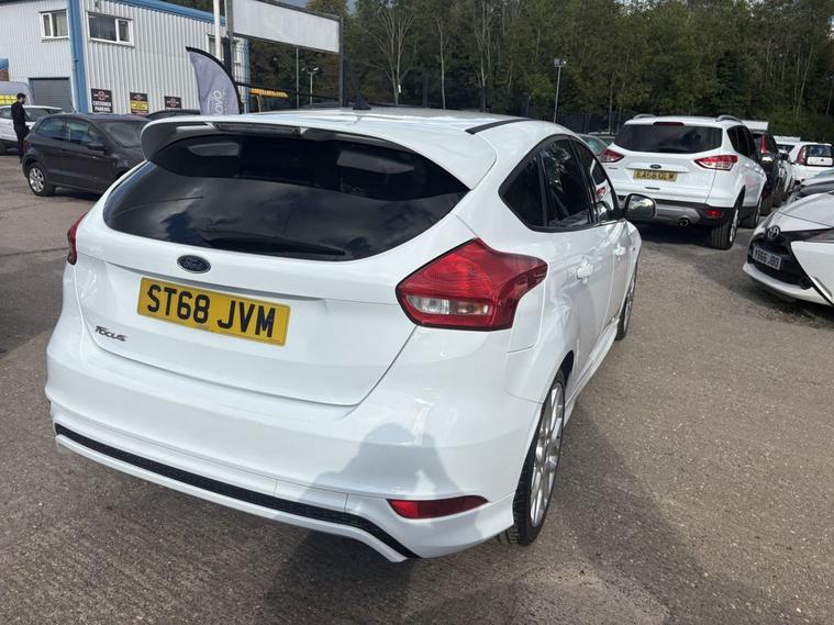 Discover this white 2018 Ford Focus TDCi ST-Line with exceptionally low mileage for its age, having covered just 40, 736 miles. This Euro 6 compliant model comes with 12 months MOT and 3 months warranty offering peace of mind. It features manual air conditioning for your comfort, ensuring a pleasant driving experience in all conditions. This Focus ST-Line is a standout choice, particularly for its impressive fuel economy, achieving an outstanding 74 miles per gallon. This exceptional figure, combined with its low CO2 emissions, indicates that this vehicle is more economical to run and better for the environment than many similar cars.
