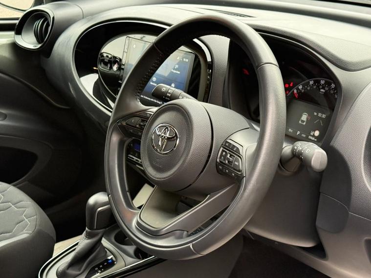 Here for sale at Leigh Cars Ltd we are delighted to present this pristine example of the ULEZ FREE Toyota AYGO X 1.0 VVT-i Exclusive Automatic 72bhp 5 door automatic finished in cardamom green and black metallic paint. This wonderful example comes with full service history - 3 services - last done in October 2025. As part of our thorough pre sale preparations the vehicle has been fully safety inspected with a brand new MOT completed in October 2025, and is ready to go home to its new owner. This particular example benefits from features including, inbuilt satellite navigation, Apple Car Play + Android Auto, lane departure warning system, Front and Rear Parking Sensors, rear parking camera, automatic lights and wipers, pre crash collision safety detection system, hill start assist control (HAC), cruise control, ice cold air conditioning with dual zone climate control, bluetooth connectivity, DAB radio, voice command, auto lights + wipers, USB + AUX port, electric windows + mirrors, remote central locking, power fold door mirrors, alloy wheels, 2 keys + much much more. This would make an ideal car for any growing family or someone looking for practicality, reliability and low running costs. Road tax is only £195 per year and average fuel consumption of 56.5mpg, so is economical to run and is also ULEZ compliant! Save ££££ from new and opt for this low mileage 1 owner from new example in pristine condition. As we are an AA accredited dealer you will receive 12 months complimentary AA roadside assistance. AA warranty extension packages available up to 2 years and superb low rate zero deposit finance deals available today. Why not give us a call or visit our website finance calculator to see how affordable your new car could be. We are rated 5 stars by our customer reviews on Autotrader, Trustpilot, Facebook, Google and Car Gurus so you can be assured you are dealing with a company that truly cares about the customer. We take great pride in providing a personal quality service like no other and guarantee to make your purchase a smooth and pleasant experience. Please read our customer reviews online to see what they have to say about the level of service they received from us when purchasing a car. We have also recently been awarded with the accolade of Car Gurus Top Rated Dealer 2023 - thats 6 years running now! We are also an Autotrader Highly Rated Dealer 2019, 2020, 2022 and 2023. Buy Your Car From The Best In Essex. Viewing strictly by appointment only - please call to avoid disappointment. Nationwide deliveries available with 14 day money back guarantee upon request subject to T&Cs.