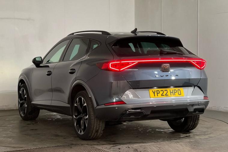 This 2022 CUPRA Formentor TSI V2 offers excellent provenance, having had only one owner and boasting an MOT valid until April 2026, with a clear vehicle history check. This Euro 6 compliant 1.5 litre petrol model comes in the V2 trim and features Kessy keyless entry and start, LED headlights for enhanced visibility, and a heated leather multi-function steering wheel complete with gear shift paddles for an engaging driving experience. The Formentor TSI V2 also includes a rear view camera and park assist with both front and rear sensors, making manoeuvring simpler. Its performance is highlighted by a swift 0-60mph acceleration time of just 8.9 seconds, demonstrating its capability compared to other vehicles in its class. This combination of advanced features and strong performance makes the CUPRA Formentor a compelling choice.