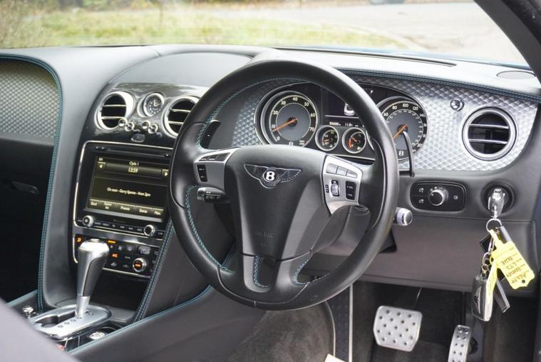 2014/64 Bentley Continental GT S 4.0 V8 all wheel drive coupe - Automatic - Finished in pristine Kingfisher Blue with contrasting sumptuous factory black leather package with contrasting blue stitching throughout! GTECHNIQ Total Surface Protection- ceramic exterior paint protection and interior antibacterial coating. Freshly refurbished, highly desirable 21 seven spoke alloy - Black Limited edition wheel option with premium Pirelli P Zero tyres all round! Sports Exhaust System. Ventilated front seats with massage option. Rear View Camera. Contrasting, cross-stitch interior, with headrest emblems, truly adds to the package. Beluga Gloss Exterior mirrors. Dark Tint front and rear lamps. Bright tint aluminium fascia panels. Just 50k miles with fantastic service history (10 Bentley main dealer services) with the most recent being in June 2025. It includes 2 keys and all book packs. On a 64 registration, private reg not for sale. Full dealer service history including recent service at Bentley Belfast