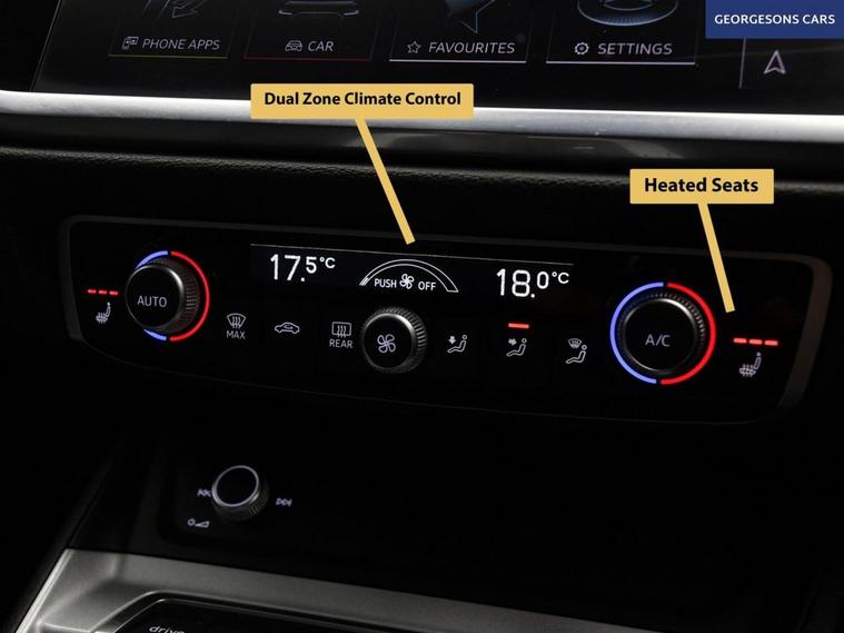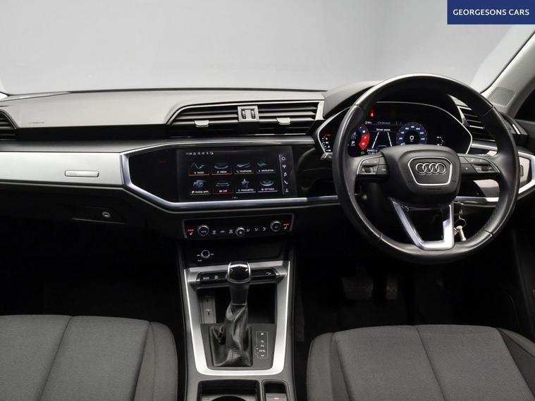 The Audi Q3 1.5 TFSI CoD 35 Technik combines a responsive 1.5-litre turbo petrol engine with 150hp, delivering 0-62mph in 9.6 seconds and up to 46.3mpg in this front-wheel-drive setup with a smooth 7-speed S Tronic automatic transmission. The Technik trim provides a strong foundation of premium tech with 17-inch alloy wheels and a sophisticated interior for refined compact SUV driving. With one owner, this Q3 is in excellent condition. Immerse yourself in premium audio with the Sonos sound system, while integrated satellite navigation, Apple CarPlay, Bluetooth, and DAB radio ensure seamless connectivity on every journey. Parking is a breeze thanks to the reverse camera and parking sensors, providing clear visibility and confidence in tight spaces. Stay comfortable with dual-zone climate control and heated seats, offering personalized warmth year-round. Cruise control with speed limiter and lane assist enhance safety and relaxation on highways. Start-stop technology improves fuel economy in traffic. The spacious five-door SUV design includes a 530-litre boot for practicality. C