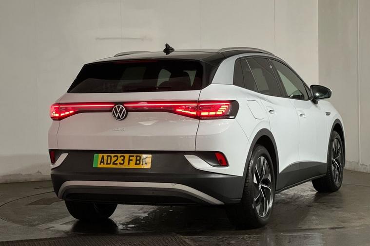 This 2023 Volkswagen ID.4 Pro Performance Style Edition is a single owner electric vehicle with a clear vehicle history check and MOT valid until July 2026. It boasts an impressive battery total capacity of 82 kWh, offering a maximum range of 322 miles from new. Convenience is key with features like App Connect providing wireless Apple CarPlay and Android Auto, alongside a Keyless Opening System and Keyless Start for effortless access. Stay connected and powered up with the Wireless Smartphone Charger, while the Air Care Climatronic 3-Zone system ensures personalised comfort for all occupants, complemented by a Rear View Camera for easier parking. The electric powertrain of this ID.4 offers a compelling alternative to traditional combustion engines, with a full charge at home taking approximately 12 hours and 40 minutes using a 7kW charger. For faster top ups, public charging can achieve 80% capacity in just 40 minutes from empty. These charging capabilities, combined with its substantial range and advanced features like the multi-zone climate control and seamless smartphone integration, position this Volkswagen ID.4 as a highly practical and technologically advanced choice for modern driving.