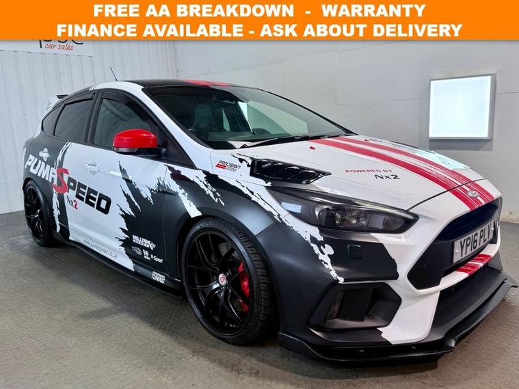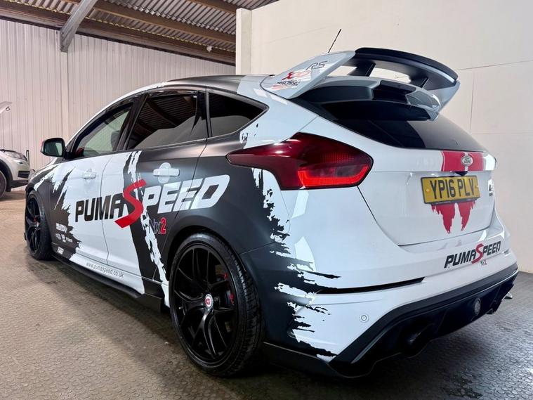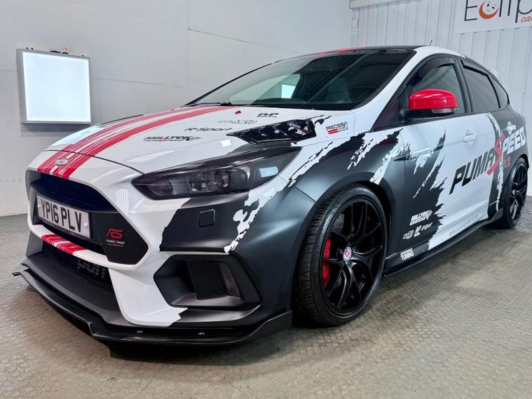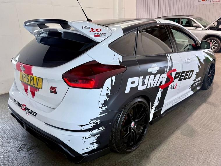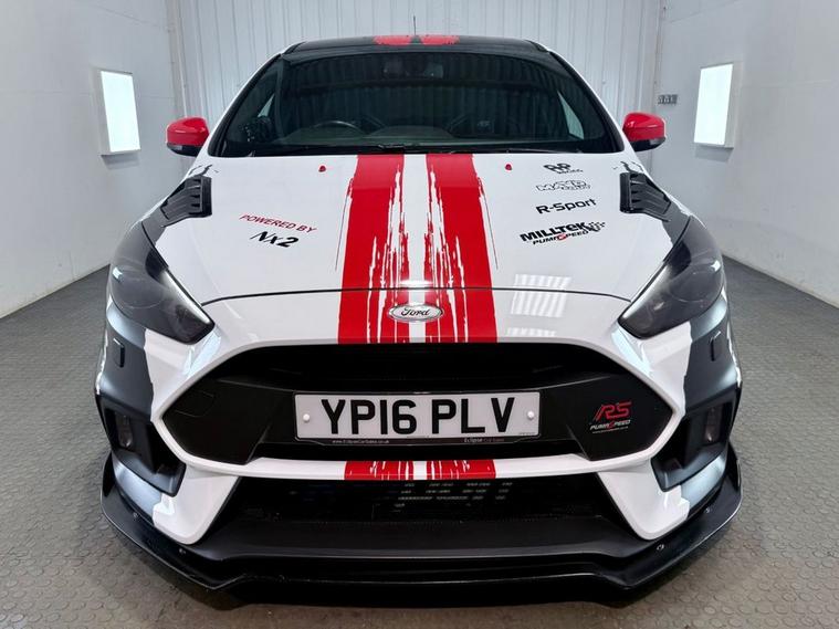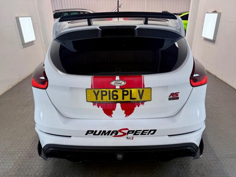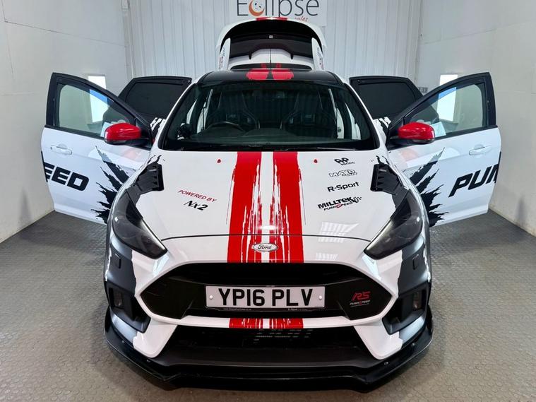 **THIS VEHICLE MAY BE AT OUR 150-CAR STORAGE FACILITY. PLEASE CALL AHEAD TO ARRANGE VIEWING AT OUR WINCHESTER SALES SITE** MOT April 2026. Serviced at 22k and 23k miles. An upgraded 2.3 litre Ford Focus RS finished in Frozen white and PumaSpeed decor stickers with 19 inch alloy wheels. The previous owner of this Focus RS was a passionate driver and has fitted multiple upgrades making this car a smooth, powerful ride. Upgraded with Manley pistons, Manley rods, King race bearings, ARP head studs, Pumaspeed uprated high pressure fuel pump, Precision NX2 turbo 500BHP+, Ram air induction kit, Full militek exhaust Decat and resonated, Competition clutch and flywheel, Rsport pro800 intercooler, Full bigger boost pipes, MSD stage 4 mapping 500BHP. The transmission is also upgraded with Quaife differential, Aluminium shifter bushes. The combination of this with the forged engine and a Full pumaspeed brake package, Nankang 235/35/19 Tyres and the outer wrap makes for a fast, powerful, exciting and exhilarating drive.