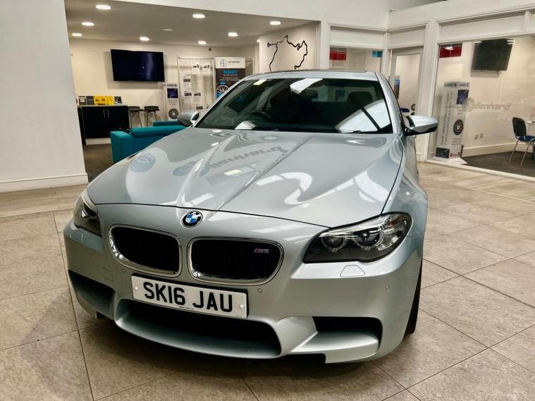Enjoy the perfect blend of power, luxury, and motorsport heritage with this 2016 BMW M5 4.4 V8 Saloon. Beneath the bonnet lies a ferocious 4.4-litre twin-turbocharged V8 engine delivering an exhilarating 560 PS, seamlessly paired with BMWs lightning-fast 7-speed dual-clutch transmission. Capable of reaching 62 mph in just 4.3 seconds, this M5 is a true performance icon the embodiment of BMWs M division legacy, honed over decades of racetrack engineering and innovation. Finished in sleek, menacing black with factory privacy glass, this M5 stands apart with its aggressive stance, further enhanced by stunning 20 M Double Spoke alloy wheels. Inside, the cabin is a masterpiece of driver-focused design, wrapped in rare extended Sakhir Orange Merino leather that adds drama and sophistication to every journey. The seats offer the perfect balance of support and comfort, while every detail, from the soft-touch materials to the precision stitching, reflects BMWs commitment to craftsmanship. Since its debut in the mid-1980s, the M5 has been the benchmark for high-performance executive saloons. This 2016 model carries forward that tradition with brutal straight-line speed, razor-sharp handling, and a refined ride making it as suited to cross-continental cruising as it is to spirited backroad drives. A car for the discerning driver who demands both pace and presence, this M5 is a rare blend of everyday usability and motorsport DNA. Service History 07/07/2025 @ 46520 miles 31/03/2023 @ 35179 miles 23/07/2022 @ 33127 miles 16/03/2020 @ 23631 miles 10/09/2019 @ 20526 miles 05/02/2018 @ 14315 miles 15/04/2016 @ 1132 miles At Kallenhard Engineering we specialise in Performance, Prestige, and 44s. Because preparation is at the heart of everything we do, all our cars are prepared mechanically and cosmetically to the highest standards. Starting with an independent AA inspection, any work highlighted (including due services) will be completed before you pick up your new car. All cars come with a 6-month Autoguard warranty and extended warranties are available on request. In addition to this, a clear HPI along with the full AA report is provided with your purchase for added peace of mind. Parking sensors can be fitted upon request if not already factory fitted. The Post Code for your Sat Nav is LU7 0QD