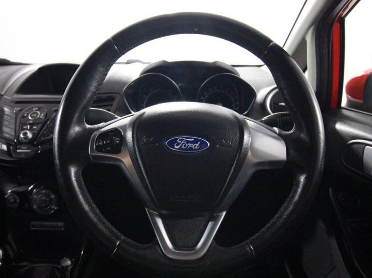 2 Owners. Full service history with 9 services. Last serviced at 46, 210 miles. Introducing the 2015 Ford Fiesta 1.0T EcoBoost Zetec, a highly popular and stylish 5-door hatchback combining sporty looks with efficient performance. Finished in vibrant Race Red with 15-inch 5x2 spoke alloy wheels and body-coloured bumpers and mirrors, this Euro 6 petrol manual delivers an engaging and fun driving experience. Its compact size, sleek silhouette, and tinted rear glass make it ideal for city driving and weekend adventures alike. Powered by the efficient 1.0-litre EcoBoost petrol engine producing 100ps with start-stop technology, the Fiesta offers lively yet economical performance with Euro 6 compliance. The Zetec trim features include Ford SYNC with DAB radio, Bluetooth hands-free phone connectivity, six premium speakers, and voice control for audio. Essential safety and convenience assists include electronic stability programme (ESP), hill start assist, deflation detection system, and multiple airbags including curtain and driver knee airbags. Inside, the cabin is comfortable and practical with a leather-trimmed steering wheel and handbrake, manual air conditioning, a multifunction steering wheel, and illuminated glovebox. The 60-40 split rear seats and removable parcel tray add versatile storage options, while careful touches such as chrome grille surrounds, front fog lights, and LED daytime running lights enhance appearance and visibility. The 2015 Ford Fiesta 1.0T EcoBoost Zetec is an excellent choice for drivers seeking a stylish, technology-rich, and efficient hatchback.