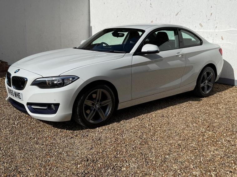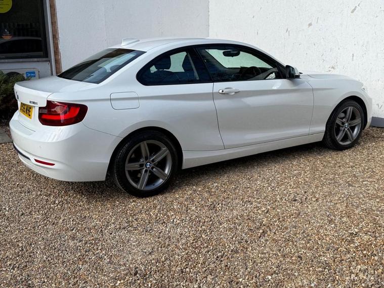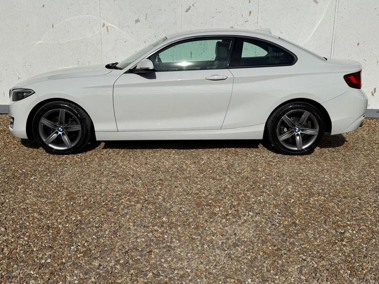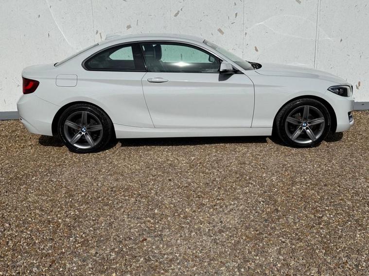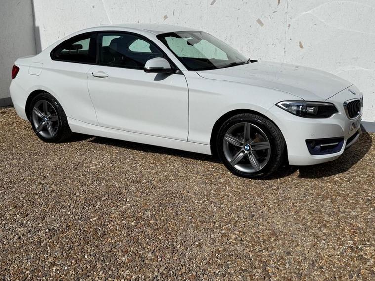 THIS WELL PRESENTED BMW 218i SPORT COUPE FINISHED IN WHITE COMES WITH SERVICE HISTORY, 2 KEYS AND FEATURES INCLUDING, FULL BLACK LEATHER INTERIOR, SATELLITE NAVIGATION, DUAL CLIMATE CONTROL, DAB DIGITAL RADIO WITH USB AND AUX POINT, BLUETOOTH HANDSFREE, MULTIFUNCTION LEATHER STEERING WHEEL, AUTO LIGHTS, ELECTRIC WINDOWS, ELECTRIC MIRRORS AND REMOTE CENTRAL LOCKING. IT ALSO BENEFITS FROM; AN AUTOMATIC GEARBOX, AUTO STOP/START FUNCTION, ECO-PRO/SPORTS MODE, HEATED REAR WINDOW, REAR PARKING SENSORS AND 17 ALLOY WHEELS.