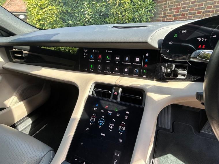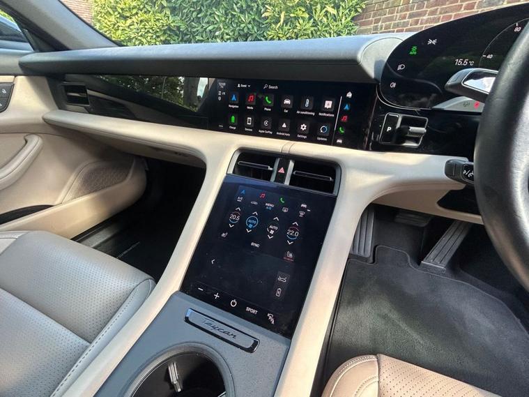 This 2023 Porsche Taycan Performance offers an exceptional blend of electric performance and refined luxury. As an electric vehicle, it boasts a 79 kWh battery providing a maximum range of 268 miles when new. Charging is convenient, with a full charge at home using a 7kW charger taking approximately 12 hours, and rapid charging to 80% achievable in just 24 minutes at a public charging station. This Taycan is equipped with ParkAssist for front and rear parking, including visual and audible warnings, and a wireless phone charging compartment. For enhanced visibility and convenience, it features automatic headlight activation with welcome home lighting and LED headlights. Comfort is assured with heated front seats. Experience exhilarating performance with the Taycans impressive acceleration, reaching 0-60mph in a swift 5.4 seconds. This capability demonstrates its superior engineering compared to many other vehicles in its class. The combination of its advanced electric powertrain, comprehensive safety and convenience features, and the renowned Porsche driving dynamics makes this Taycan a compelling choice for those seeking an advanced and engaging electric car.