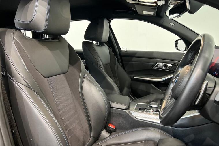 This 2022 BMW 330e M Sport is a remarkable example, boasting a single owner and exceptionally low mileage for its year at just 36, 465 miles. This Euro 6 compliant plug-in hybrid combines a 2.0 litre petrol engine with electric power, offering an impressive 0-60mph time of 5.9 seconds. Its MOT is valid until July 2026, and a clear vehicle history check confirms its excellent condition. The M Sport trim enhances its dynamic appeal, while features like the Parking Assistant with front and rear sensors and a rear camera, along with LED headlights, ensure confident manoeuvring. Inside, youll find the BMW Live Cockpit Plus, complete with Bluetooth connectivity, and the Connected Package Pro which seamlessly integrates Android Auto and Apple CarPlay. Automatic air conditioning with climate control provides a comfortable cabin environment for all occupants. These features, combined with its efficient plug-in hybrid technology and exhilarating performance, set this 330e M Sport apart from other vehicles in its class, offering a sophisticated and engaging driving experience.
