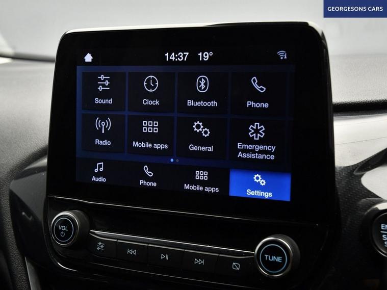 The Ford Fiesta 1.0T EcoBoost Active combines a responsive 1.0-litre turbo petrol engine with 125hp, delivering 0-62mph in 9.9 seconds and up to 55.4mpg in this front-wheel-drive setup with a precise 6-speed manual transmission. The Active trim offers crossover appeal with raised ride height, 17-inch alloy wheels, and practical styling for versatile urban driving. With one owner and three services, this Fiesta is in excellent condition. Navigate effortlessly with Apple CarPlay, Bluetooth, and DAB radio, ensuring seamless connectivity on every journey. Parking is a breeze thanks to the parking sensors, providing confidence in tight spaces. Stay comfortable with air conditioning and a heated windscreen, offering quick defrosting on chilly mornings. Cruise control with speed limiter enhances relaxation on highways, while selectable drive modes provide tailored performance, whether for efficiency or dynamic driving. The push-button start adds daily convenience, and the spacious five-door hatchback design includes a 311-litre boot for practicality. Contact us today to test drive this stylish supermini!