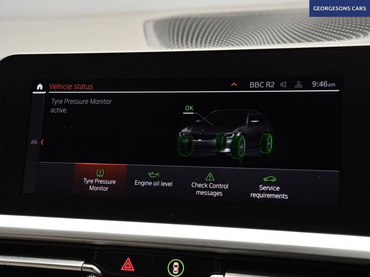 This BMW 3 Series 2.0 320i Sport combines a responsive 2.0-litre turbo petrol engine with 184hp, delivering 0-62mph in 7.1 seconds and up to 44.1mpg in this rear-wheel-drive setup with a smooth 8-speed automatic transmission. The Sport trim enhances the dynamic appeal with 18-inch alloy wheels, sporty styling, and a refined interior for premium saloon driving. With one owner, a full BMW service history with 12 BMW services, plus an additional Georgesons service for added peace of mind, this 3 Series is in exceptional condition. Ambient lighting creates a sophisticated interior atmosphere, while integrated satellite navigation, Apple CarPlay, Bluetooth, and DAB radio ensure seamless connectivity on every journey. Parking is a breeze thanks to the reverse camera, parking sensors, and park assist, providing clear visibility and confidence in tight spaces. Stay comfortable with dual-zone climate control and heated seats, offering personalized warmth year-round. Cruise control with speed limiter enhances safety and relaxation on highways. Selectable drive modes provide tailored performance, whether for efficiency or dynamic driving. The spacious four-door saloon design includes a 480-litre boot for practicality. C