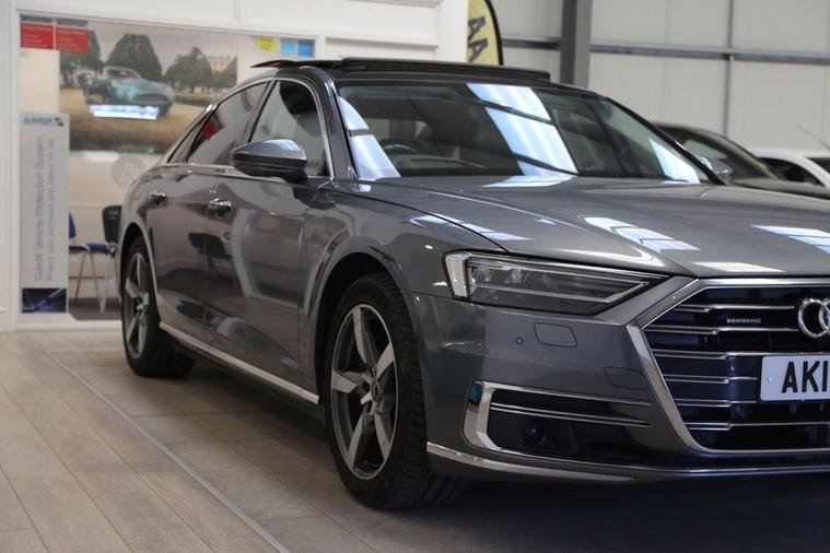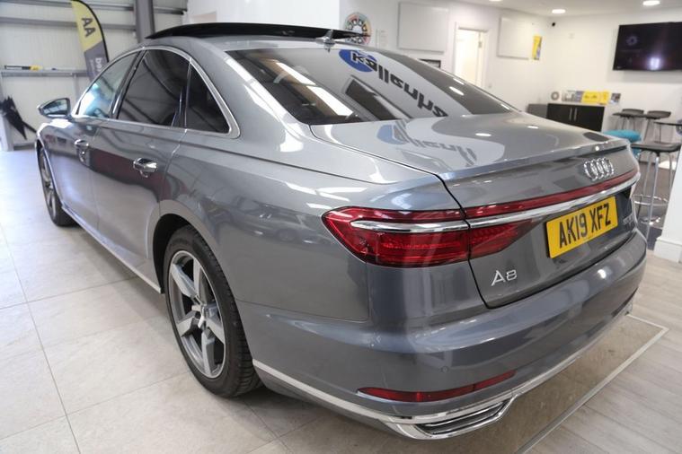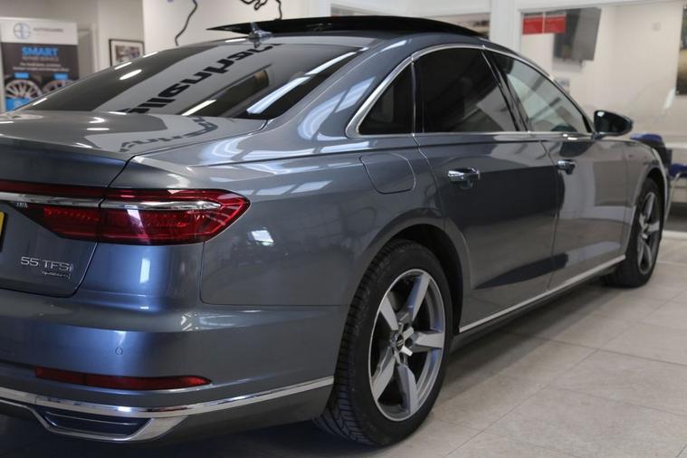Experience refined luxury and effortless performance with the Monsoon Grey Audi A8 3.0 TFSI V6 GPF 55 Saloon. With 340 PS under the hood, this Quattro all-wheel-drive masterpiece delivers a smooth yet commanding drive, thanks to its advanced Tiptronic transmission and petrol V6 powertrain built to Euro 6 (s/s) standards. The elegant silhouette is enhanced by a striking panoramic roof that floods the cabin with natural light, while factory-fitted privacy glass adds a touch of exclusivity and comfort for rear passengers. At the rear, a powered tailgate offers convenience at every journeys end, making access seamless whether youre heading to the office or escaping for the weekend. A true statement of Audis design and engineering, this A8 blends sophistication, technology, and power into a saloon that commands attention wherever it goes. Discover executive motoring at its most intelligent and intuitive. Service History 07/05/2025 13/11/2023 02/09/2022 05/10/2021 At Kallenhard Engineering we specialise in Performance, Prestige, and 44s. Because preparation is at the heart of everything we do, all our cars are prepared mechanically and cosmetically to the highest standards. Starting with an independent AA inspection, any work highlighted (including due services) will be completed before you pick up your new car. All cars come with a 6-month Autoguard warranty and extended warranties are available on request. In addition to this, a clear HPI along with the full AA report is provided with your purchase for added peace of mind. Parking sensors can be fitted upon request if not already factory fitted. The Post Code for your Sat Nav is LU7 0GR.