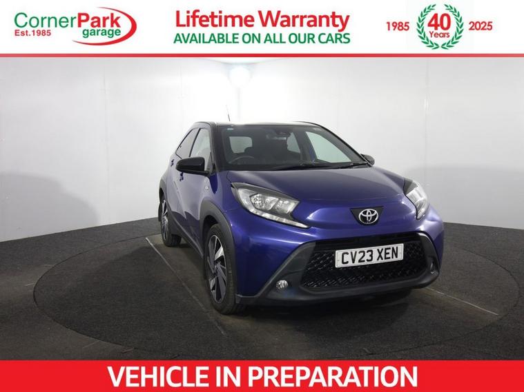 2 Owners. Introducing the 2023 Toyota Aygo X 1.0 VVT-i Edge, a bold and efficient 5-door city hatchback with dynamic crossover styling and modern tech. Finished with 18-inch bi-tone dark grey machined-face alloy wheels, gloss black upper grille, black wheel arch mouldings, and privacy glass, this Euro 6 petrol manual stands out with purposeful presence and contemporary looks. Designed for urban adventures, the Aygo X Edge offers a raised driving position and compact dimensions for effortless city navigation. Under the bonnet is an economical 1.0-litre VVT-i petrol engine delivering 72ps, providing responsive performance paired with low running costs and Toyotas proven reliability. Technology highlights include an 8-inch Toyota Touch multimedia system with DAB radio, Bluetooth, reversing camera, Apple CarPlay and Android Auto, and intelligent adaptive cruise control. Safety is enhanced with Toyota Safety Sense, lane departure alert, pre-collision system, six airbags, and hill start assist to keep you secure on every journey. Inside, the cabin features a leather-wrapped steering wheel, 4.2-inch multi-information display, automatic air conditioning, front power windows, and a spacious split-folding rear seat layout for practical storage and seating. The Aygo X Edge combines smart styling, advanced tech, comfort, and value in a modern city package, making it an ideal choice for drivers demanding style and substance.