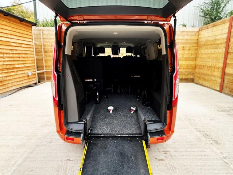 This McElmeel converted Ford Tourneo Custom Wheelchair Accessible Vehicle (WAV) has 6 Seats (2 Front and 4 Rear). Equipment includes Wheelchair Ramp, Air Conditioning, Electric Front Windows, Electric Adjustable Wing Mirrors, Power Steering, Remote Central Locking, Tinted Rear Windows.