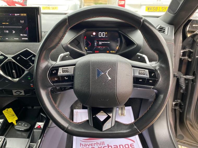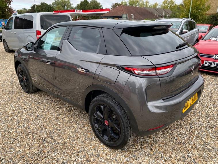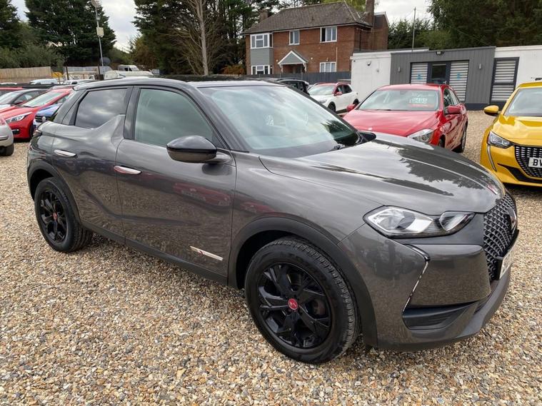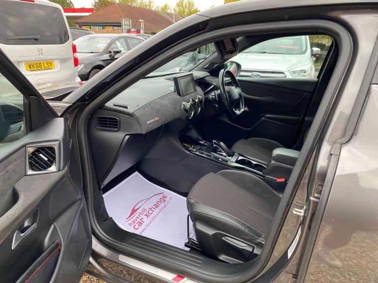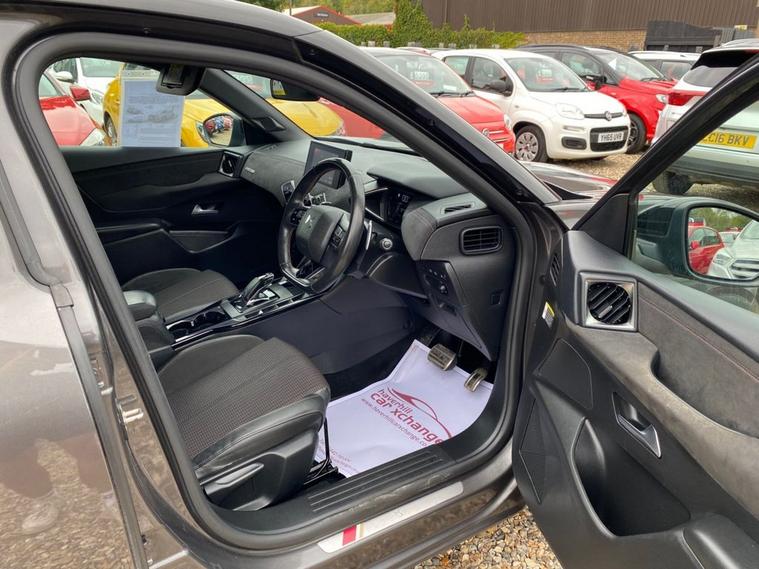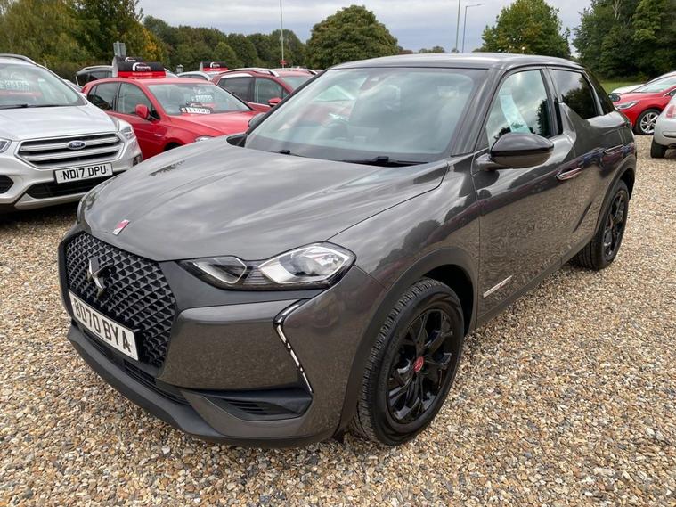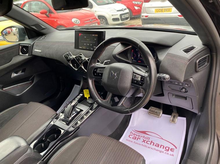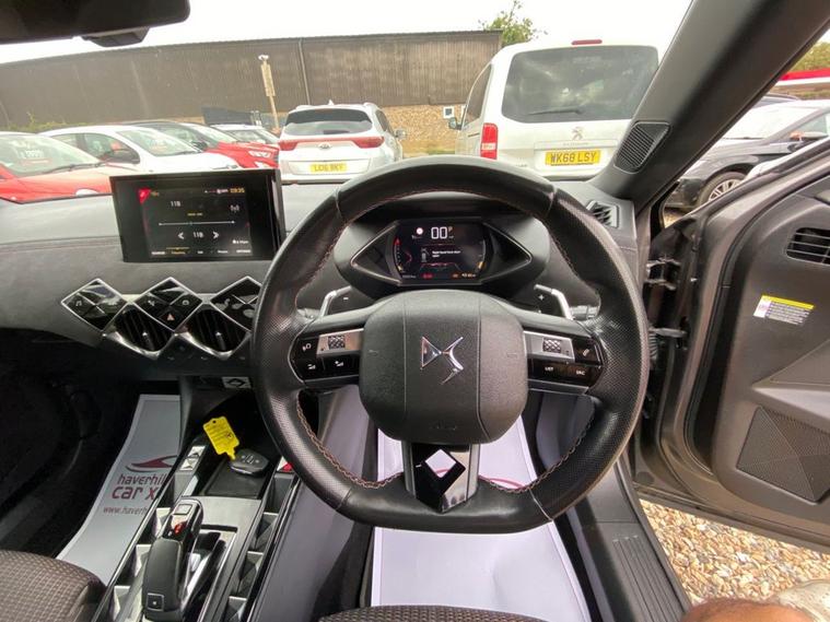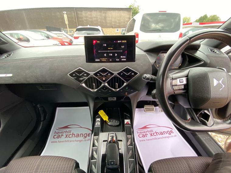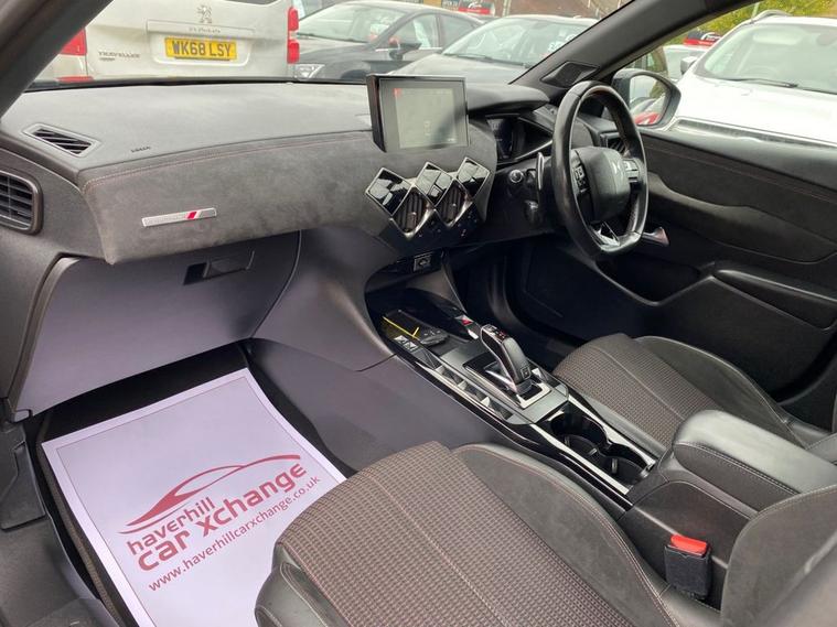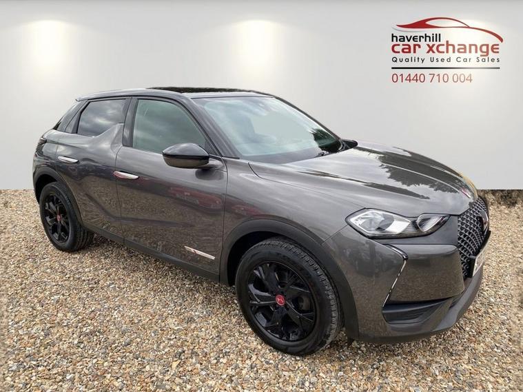 AUTOMATIC+12 MONTHS MOT+HALF LEATHER UPHOLSTERY+7 INCH TOUCHSCREEN WHICH FEATURES SATELLITE NAVIGATION SYSTEM+DAB RADIO-BLUETOOTH MEDIA STREAMING+AIR-CONDITIONING+AUTOMATIC HEADLIGHT ACTIVATION+AUTOMATIC WINDSCREEN WIPERS+PARKING ASSISTANCE WITH PARKING CAMERA+METALLIC PLATINUM GREY PAINT-PERLA NERA BLACK PAINTED ROOF+17 INCH ALLOY WHEELS. At Haverhill Car Xchange we would like to offer you our AUTOMATIC DS 3 Crossback PureTech Performance Line Crossback which has been finished in a metallic Platinum Grey Paint-Perla Nera Black roof/Door mirrors and Black half leather and cloth upholstery. Specification Includes a 7 Inch Colour Touchscreen which features Satellite Navigation-DAB Digital Radio-Apple CarPlay-Android Auto, Bluetooth Handsfree and Media Streaming, USB Connection, DS Connect Box Emergency and Assistance System, Automatic Air-Conditioning, Cruise Control with Speed Limiter, Front and Rear Electric Window, Body Coloured Bumpers/Door Handles, Perla Nera Black Rood and Door Mirrors with Integrated Side Indicators, Automatic Halogen Headlight Activation, LED Daytime Running Lights, Automatic Front Windscreen Wipers, Parking Assistance with Parking Camera, Multifunction Steering Wheel, Tinted Windows, 17 Inch Alloy Wheels, Hill Start Assist, ABS Breaking System, Airbags, Alarm, Immobiliser, Remote Central Locking and ISOFIX Anchorage Points for Child Seats.