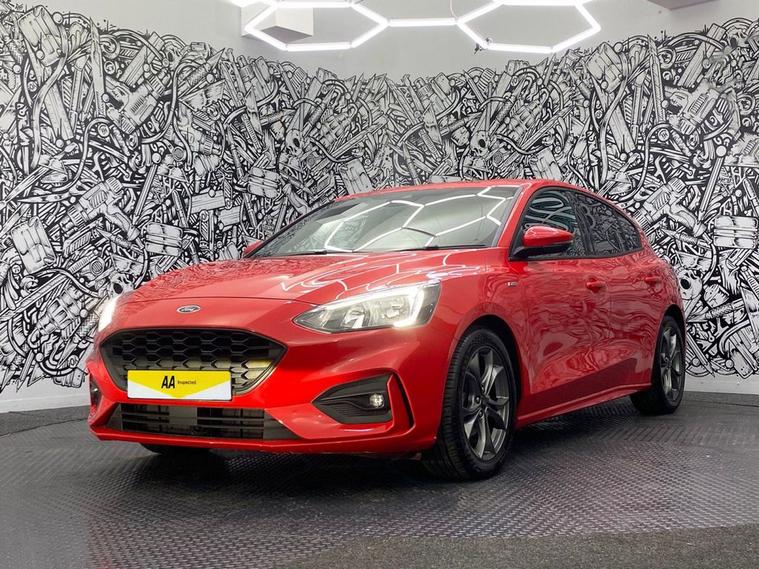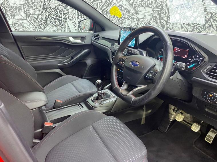 This 2018 Ford Focus ST-Line T boasts exceptionally low mileage for its age, having covered just 19, 913 miles. This Euro 6 compliant 1.0 litre petrol model offers a compelling blend of sporty styling and modern technology. Its MOT is valid until February 2026, providing peace of mind for the new owner. Inside, youll find the Ford SYNC3 DAB Radio complete with a floating 6.5 inch touchscreen, offering seamless integration with Android Auto and Apple CarPlay. The convenience of automatic headlights and manual air conditioning further enhances the driving experience. The Ford Focus ST-Line T stands out with its impressive performance, achieving 0-60mph in just 10.0 seconds, demonstrating its responsive acceleration. Furthermore, its low CO2 emissions highlight its efficiency, making it a more environmentally conscious choice compared to many other vehicles in its class. This combination of low mileage, excellent condition, and desirable features makes this Ford Focus a truly attractive proposition.