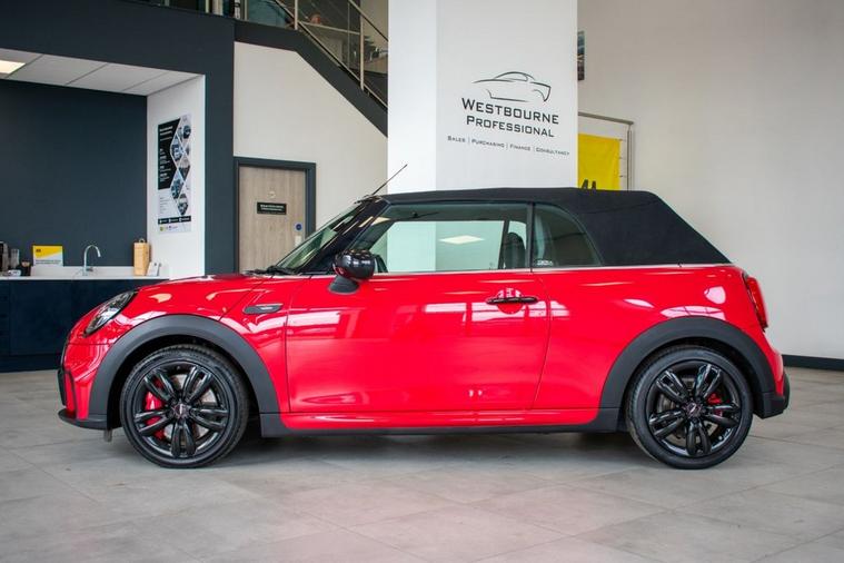 2021 71 Mini Convertible John Cooper Works, finished in Chili Red with Carbon Black Dinamica interior. Equipped with excellent specification including Navigation Package, Apple CarPlay, Bluetooth Telephone & Audio Connectivity, DAB Radio, Cruise Control, Automatic LED Headlights, MINI Driving Modes, 17-inch JCW Track Spoke Alloy Wheels in Black, JCW Aerodynamic Kit, JCW Sports Seats, Leather Multifunction JCW Steering Wheel, Rear Parking Sensors and more. A one owner example supplied with full Mini service history carried out at 16185 miles.