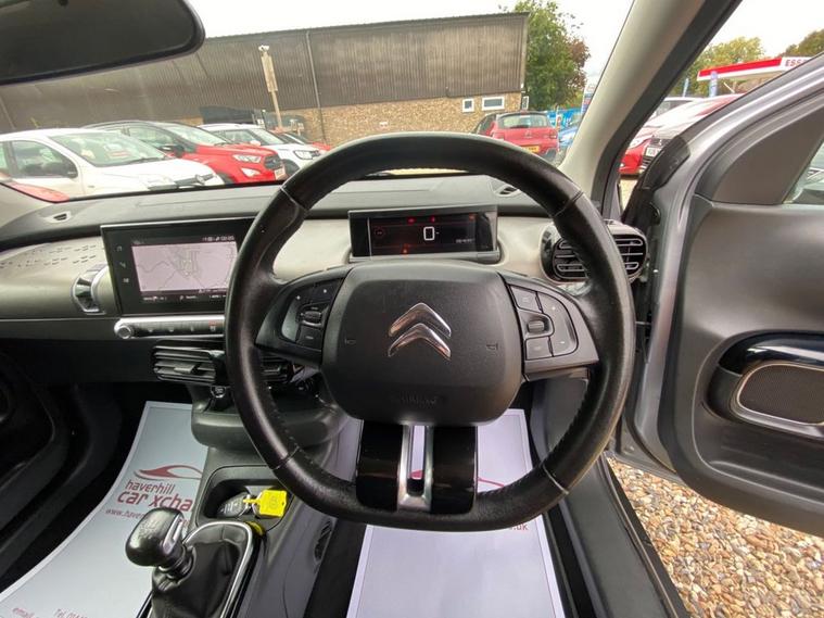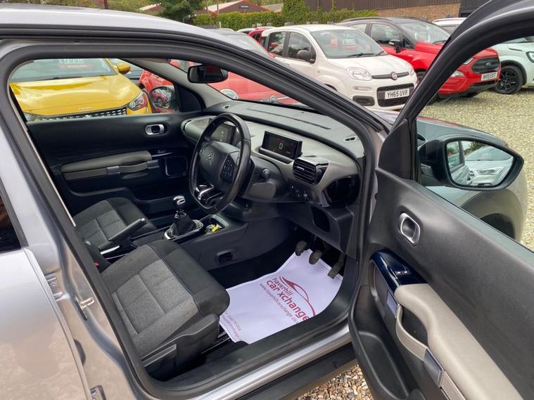 ONLY 64, 695 MILES+7 INCH TOUCHSCREEN WHICH FEATURES SATELLITE NAVIGATION-DAB DIGITAL RADIO+BLUETOOTH HANDSFREE AND MEDIA STREAMING+LANE DEAPARTURE WARNING, LED DAYTIME RUNNING LIGHTS+METALLIC CUMULUS GREY PAINT+17 INCH ALLOY WHEELS. At Haverhill Car Xchange we would like to offer you our Citroen C4 Cactus PureTech GPF Flair Hatchback which has been finished in a metallic Cumulus Grey paint Cloth upholstery with Wild Grey Ambience. Specification Includes a 7 Inch Touchscreen which features Citroen Connect Nav with Citroen Connect Box, DAB Digital Radio-MP3 Player, Bluetooth Handsfree and Media Streaming, USB Socket, Front Wlw12 Volt Power Socket, Road Sign Recognition, Lane Departure Warning, Gear Efficiency Indicator, Cruise Control with Speed Limiter, Electric Windows with One-Touch Facility, Body Coloured Bumpers/Door Handles, Gloss Black Door Mirrors, Gloss Black Pack, Chrome Pack, LED Daytime Running Lights, Front Fog Lights with Cornering Function, Rear LED 3D Effect Lights, City Camera Pack, Leather Steering Wheel with Integrated Multifunction Controls, Keyless Entry and Start, Dark Tinted Windows, 17 Inch Alloy Wheels, Electric Power Assisted Steering, Hill Start Assist, Electronic Child Locking, ABS Breaking System, Alarm, Immobiliser, Central Locking and ISOFIX Anchorage Points for Child Seats.