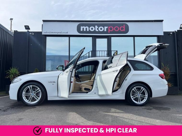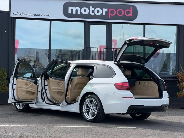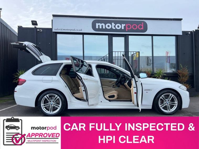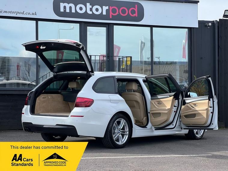 BMW 5 Series 520d M Sport Touring Luxury, Space & Sporty Performance Drive away in style with this immaculate BMW 5 Series 2.0 520d M Sport Touring 5dr Diesel Auto Euro 6. Combining sharp M Sport styling with outstanding practicality, this Touring estate is the perfect balance of performance, efficiency, and comfort. The automatic transmission makes every drive smooth and effortless, while the powerful yet economical Euro 6 diesel engine ensures youre ULEZ compliant and ready for any journey. Inside, youll find a premium cabin with sport seats, advanced tech, and exceptional comfort, making it ideal for family life, business, or long-distance driving. Spacious, stylish, and built with BMWs legendary attention to detail, this 5 Series Touring is a car that truly does it all. 12-Month Warranty Included for complete peace of mind Euro 6 ULEZ compliant Efficient yet powerful 2.0 diesel engine Sleek M Sport styling Automatic gearbox for effortless driving Large Touring estate ideal for families & professionals With its combination of sporty looks, luxury comfort, and everyday practicality plus the reassurance of a 12-month warranty this BMW 5 Series is ready to impress.