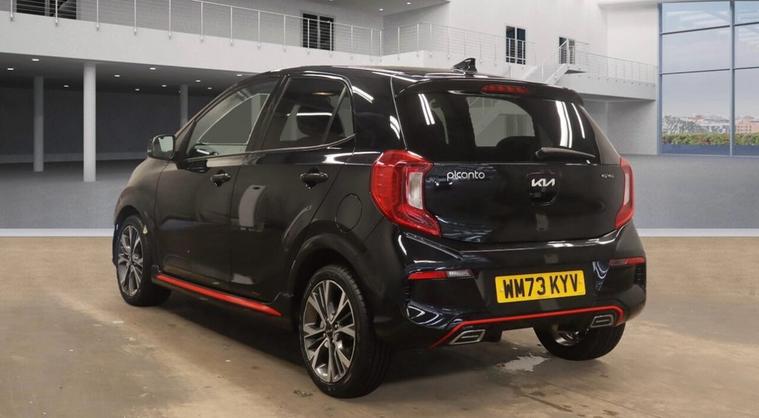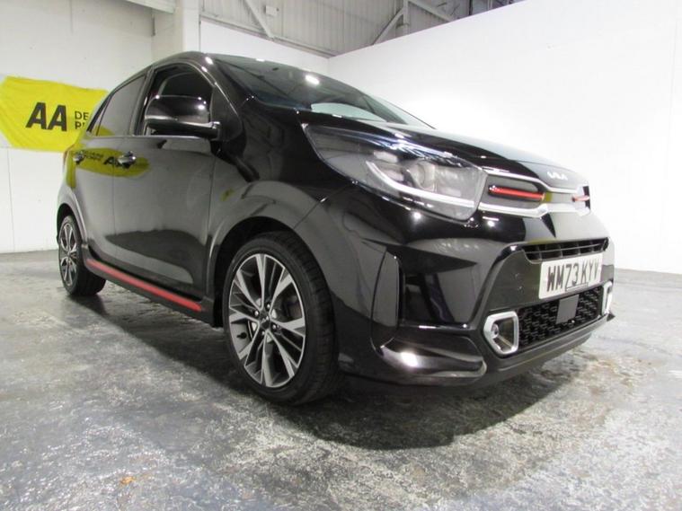 Here we have a Kia Picanto 1.0 GT-Line Hatchback with great spec including DAB Radio, Bluetooth, Apple car play, Android play, Leather trim, Air conditioning. Power folding mirrors, Front and rear electric windows, Rear parking sensors with camera, Full power mirrors, Privacy glass, Diamond cut alloy wheels, Kia service history , Low miles.