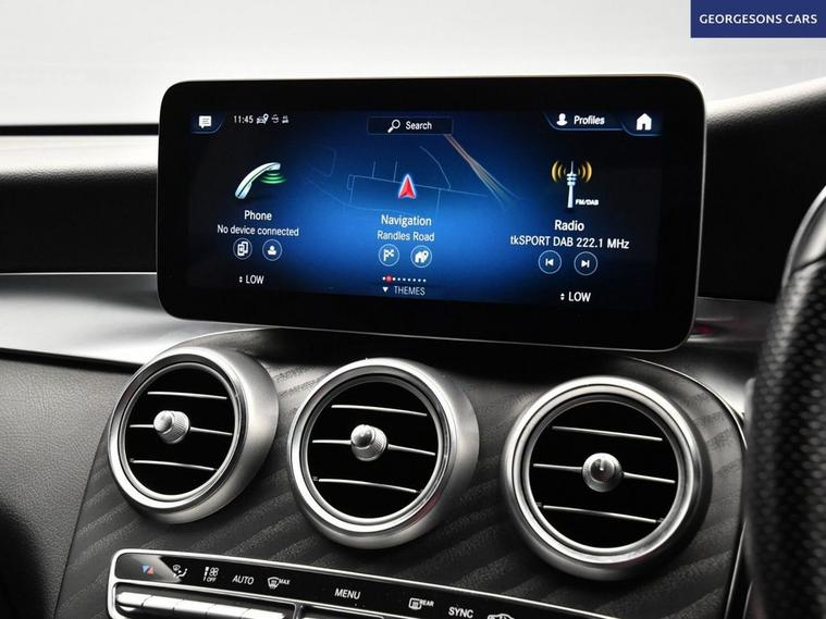 The Mercedes-Benz GLC 2.0 GLC300d AMG Line (Premium) combines a responsive 2.0-litre turbo diesel engine with 269hp, delivering 0-62mph in 6.2 seconds and up to 48.7mpg in this all-wheel-drive 4MATIC setup with a smooth 9-speed G-Tronic+ automatic transmission. The AMG Line (Premium) trim enhances the sporty appeal with aggressive styling, and a dynamic chassis for refined luxury SUV performance. With full service history including five services, four of which are Mercedes dealer services, this GLC is in excellent condition. Navigate effortlessly with integrated satellite navigation, Apple CarPlay, Bluetooth, and DAB radio, ensuring seamless connectivity on every journey. Parking is a breeze thanks to the reverse camera and parking sensors, providing clear visibility and confidence in tight spaces. Ambient lighting creates a sophisticated interior atmosphere, while dual-zone climate control with air conditioning and electric heated seats offer personalized warmth year-round. Adaptive cruise control with speed limiter enhances safety and relaxation on highways, while selectable drive modes provide tailored performance, whether for efficiency or dynamic driving. Start-stop technology improves fuel economy, and the push-button start adds daily convenience. The spacious five-door SUV design includes a 620-litre boot for practicality.