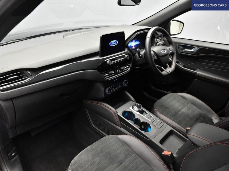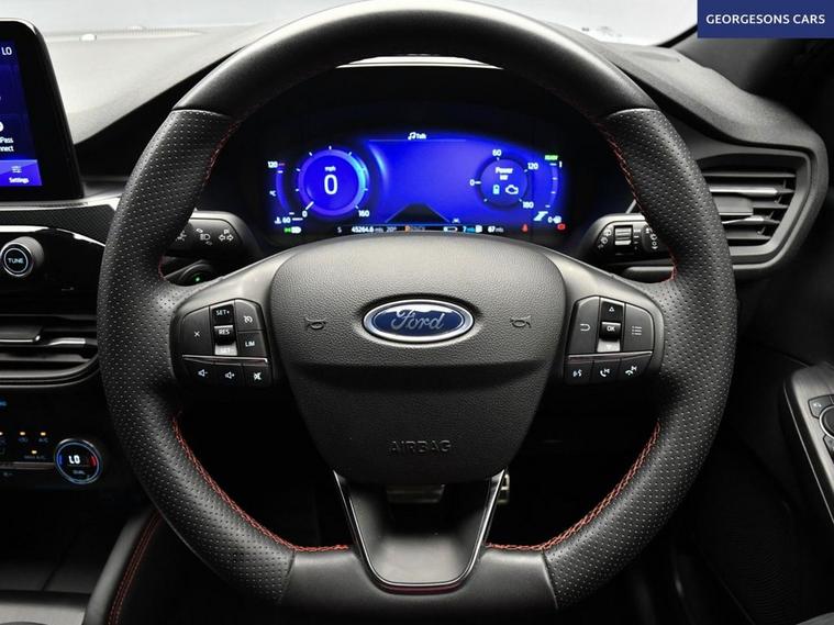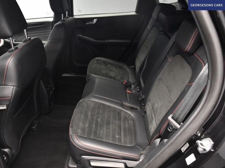 The Ford Kuga 2.5 EcoBoost Duratec 14.4kWh ST-Line combines a responsive 2.5-litre turbo petrol plug-in hybrid engine with 240hp, delivering 0-62mph in 7.3 seconds and up to 201.8mpg in this front-wheel-drive setup with a smooth CVT automatic transmission. The ST-Line trim enhances the sporty appeal with aggressive styling, and a dynamic chassis for refined SUV performance. Finished in metallic Agate Black with red stitch partial Sensico seats for premium contrast, this Kuga is with one owner and three services, in excellent condition. Navigate effortlessly with integrated satellite navigation, Apple CarPlay, Bluetooth, and DAB radio, ensuring seamless connectivity on every journey. Parking is a breeze thanks to the reverse camera and parking sensors, providing clear visibility and confidence in tight spaces. Stay comfortable with dual-zone climate control and a heated windscreen, offering personalized warmth year-round. Cruise control with speed limiter and lane assist enhance safety and relaxation on highways. Selectable drive modes provide tailored performance, whether for efficiency or dynamic driving, and electric seats ensure adjustable luxury. The spacious five-door SUV design includes a 412-litre boot for practicality. C