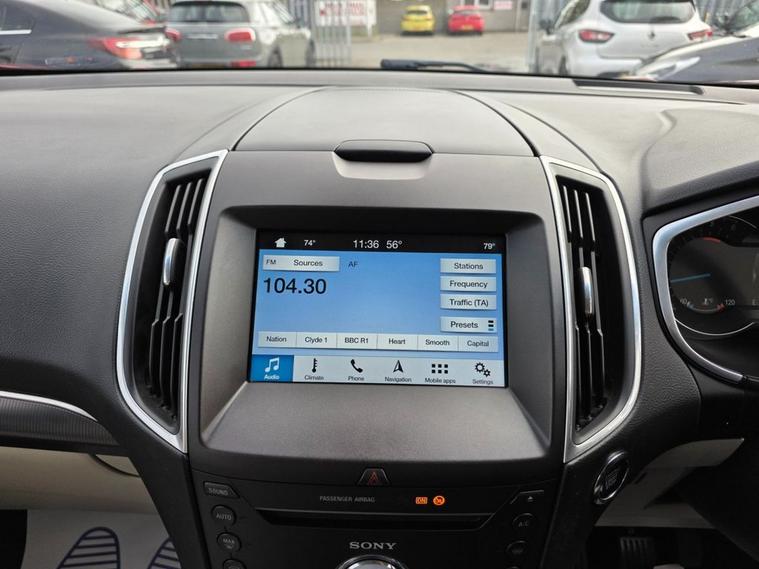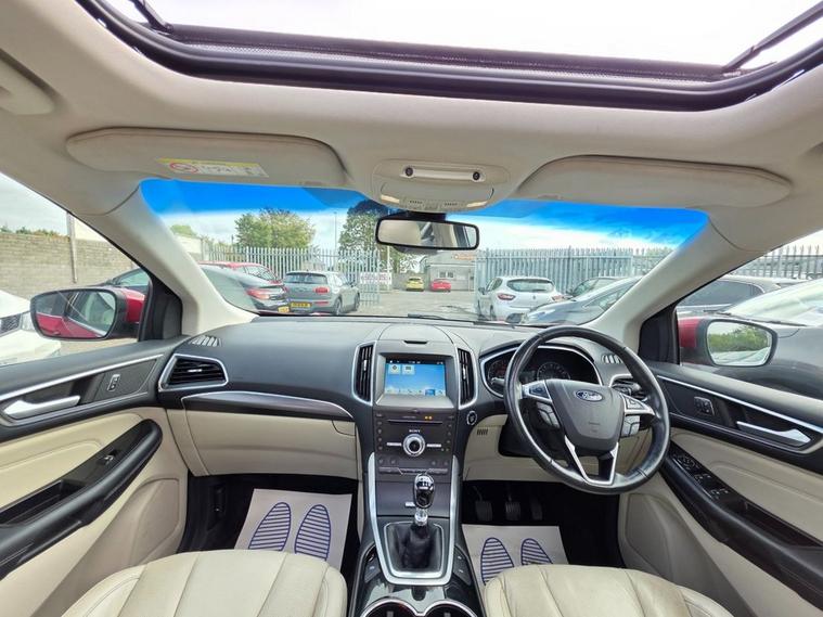 1 Year MOT included. A full health report provided at the time of sale. Supplied with two keys and a 3-month parts & labour warranty. Service history available. Finance options available from zero deposit apply directly through our website. 12 months of complimentary AA Breakdown Cover included with every car. Extended AA warranties available at an additional cost. A small deposit can secure any car for up to one week. 19in Alloy Wheels - Luster Nickel 220 V Power Outlet in Centre Console ABS - Anti-lock Braking System Active City Stop with Pedestrian Detection Active Noise Control Air Conditioning - Dual Zone Electronic Automatic Temperature Control Airbags - Driver Airbags - Front Passenger Airbags - Front Side Ambient Lighting Automatic Dimming Rear View Mirror Automatic Headlights with Auto High Beam and Rain Sensing Front Windscreen Wipers Bright Finish on Upper Door Line Centre Console with Fixed Armrest - Stowage and Cup Holders Cruise Control with Adjustable Speed Limiter Daytime Running Lamps Door Mirrors - Power-Foldable with Puddle Lights ESP - Electronic Stability Programme Electric Parking Brake Floor Mats - Front and Rear - Velour Fold Flat Rear Seats - Second Row Seats with Easy Fold Seat Function and Recline Ford DAB Audio with Navigation System with 9 Speakers Ford Easy Fuel - Capless Refuelling with Misfuel Inhibitor Ford Key Free System with Hands-Free Power Tailgate Ford Power Engine Start-Stop Button Front Fog Lights Front Lower Grille - Chrome Front and Rear Parking Sensors Keyless Start Button LED Second Row Reading Lights Lane Keeping Aid with Traffic Sign Recognition Leather Trimmed Steering Wheel and Gear Knob MyKey Power Assisted Steering Power Front and Rear Windows with Key Fob Operated Global Opening and Closing Premium Instrument Cluster Privacy Glass - Dark Tinted - Rear Quickclear Heated Windscreen Rear Lights - LED Rear Spoiler - Body Colour Rear View Camera Roof Rails - Chrome Finish SYNC 2 with Bluetooth and Voice Control - 8in Colour Touchscreen and Emergency Assistance Scuff Plates - Illuminated Seats - Drivers 4-Way Manual Adjustment Seats - Front - Heated - Sport Thatcham Category 1 Alarm Tyre Pressure Monitoring System Browse more vehicles at: dealer's website
