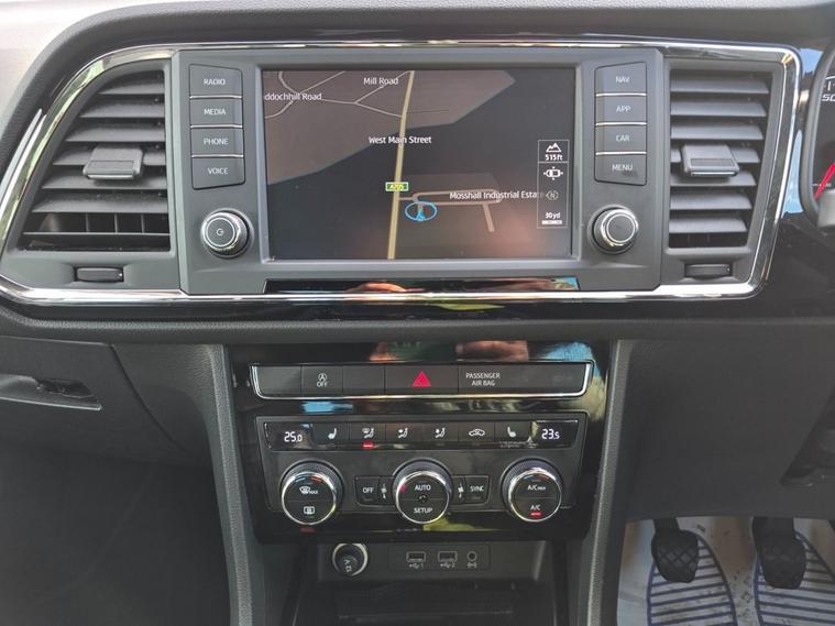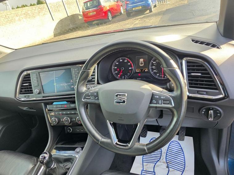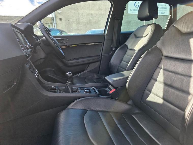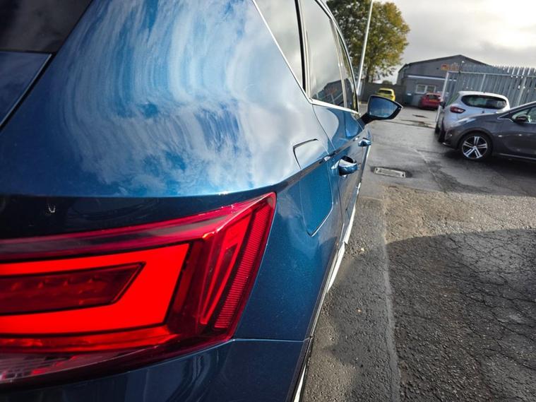 MOT Valid till 17/10/2026 A full health report provided at the time of sale. Supplied with two keys and a 3-month parts & labour warranty. Finance options available from zero deposit apply directly through our website. 12 months of complimentary AA Breakdown Cover included with every car. Extended AA warranties available at an additional cost. 12V Socket in Front 18in Alloy Wheels - Performance 3.5in Drivers Display Active Front Head Restraints Advanced Multi Colour Interior Ambient Lighting and LED Interior Illumination Alarm - Perimeter and Interior Monitoring Aluminium Door Step in Front Doors Aluminium Roof Rails Ambient Spot Lighting and Front Footwell Illumination Anti-Lock Braking System - ABS Armrest with Air Outlet in Rear Black Interior Roof Chrome Dashboard Detailing Chrome Double Exhaust Pipe Comfort Suspension Convenience Pack Cruise Control Dark Tinted Rear Windows Digital Clock Door Mirrors and Door Handles in Body Colour Door Mirrors with Welcome Light Silhouette Driver and Front Passenger Airbags Driver and Passenger Seat with Lumbar Adjustment Driver and Passenger Sunvisor with Card Holder for Driver Driver and Passenger Sunvisor with Covered and Illuminated Mirrors Drivers Knee Airbag Drivers Seat Lumbar Adjustment Dual Zone Climate Control Electric Parking Brake Electrically Folding Door Mirrors Electronic Differential Lock System - XDS Electronic Stability Control - ESC Four Cargo Rings in the Boot Front Armrest - Adjustable with Storage Compartment Front Assist - City Emergency Braking and Pedestrian Protection Front Courtesy Light with Front and Rear Reading Lights Front Cup Holders Front Fog Lights with Cornering Function Front Grille Frame - Chrome Front Passenger Airbag De-Activation Front Seat Back Storage Pockets Front Side Airbags Front and Rear Electric Windows Front and Rear Seatbelt Reminder Fuel Filler Flap linked to Central Locking Full LED Headlights Full Link Gear Recommendation Indicator Height Adjustable Front Headrests Height Adjustable Passenger Seat Height-Adjustable Drivers Seat Hill Hold Control ISOFIX Points in Outer Rear Seats with Top Tether Anchorage Points Illuminated Boot Illuminated Glovebox Instrument Lighting with Brightness Control KESSY - Keyless Entry and Go LED Daytime Running Lights LED Taillights Leather Gear Knob Leather Steering Wheel Lights Left On Warning Buzzer Locking Wheel Bolts Low Fuel Warning Light Media System Plus Navigation System Outside Temperature Gauge Power Steering - Electrically Assisted RPM Counter Rear Armrest and Easy Back Seat Release Mechanism From Boot Rear Fog Light Rear Parking Sensors Rear Reading Lights Rear View Camera Rear Wash - Wipe SEAT Drive Profile with Driving Experience Button SEAT Logo Tailgate Release Split Folding Rear Seats 60/40 with Reclining Function Steering Wheel-Mounted Audio and Phone Controls Storage Box Under Drivers Seat Sunglasses Storage Compartment in Roof Console Tinted Windows Tiredness Recognition System Traction Control System - ASR Trip Computer Two Curtain Airbags Tyre Pressure Monitoring System Wheel Arch Surrounds - Black Window Surrounds - Chrome Winter Pack A small deposit can secure any car for up to one week. Browse more vehicles at: dealer's website