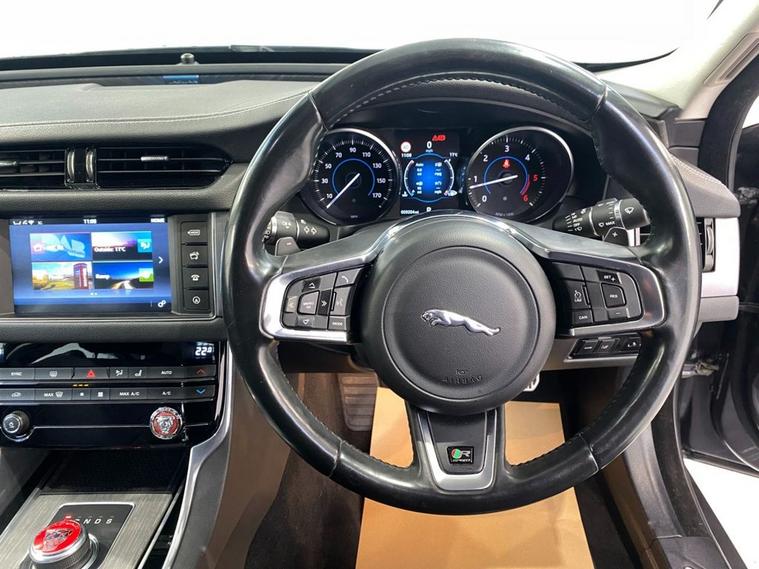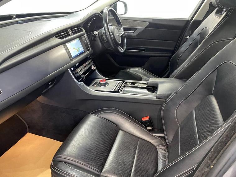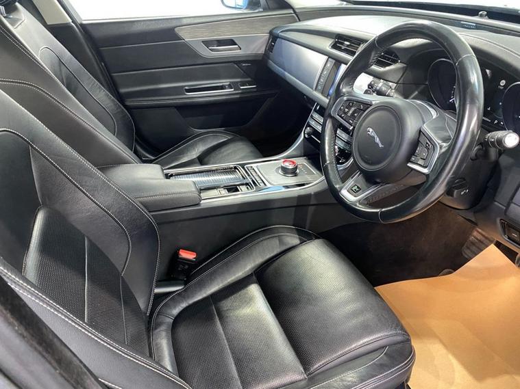 If youre a car enthusiast, its very hard not to get caught up in the magic of the Jaguar name and the XFs low-slung, sporty design and styling. Its sharp and rewarding to drive and as youd expect, comes with a great level of refinement, comfort and equipment. This ones fully colour coded in Corris Grey metallic and stands on clean 18 alloy wheels. The interior is a lovely place to be, whether youre driving or relaxing as a passenger. The seats are fully upholstered in Carbon leather and are clean, comfortable and supportive featuring 3-stage electric heating. Jaguars intuitive touchscreen media system includes navigation, Bluetooth connectivity and a rear park camera together with front and rear sensors. Cruise, audio and telephone controls can be accessed via the leather multi-function steering wheel and the driver can opt for Sport or Economy drive modes. The smooth 8 speed automatic transmission coupled with the reliable 2.0 litre diesel engine offers a powerful 178 Bhp yet should still achieve up to 74 mpg on a motorway run, according to Jaguars data.