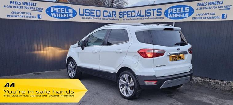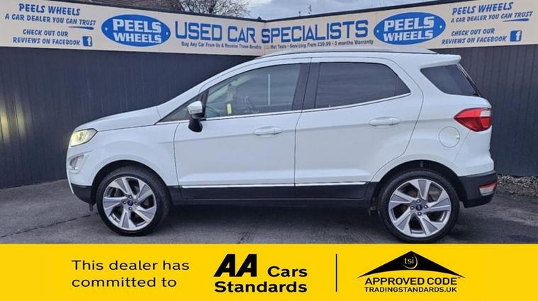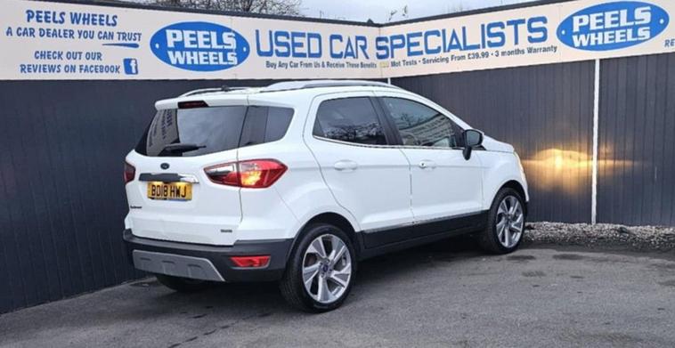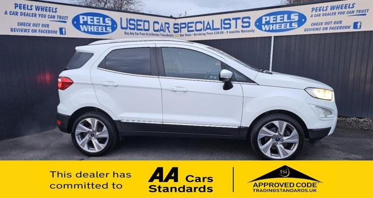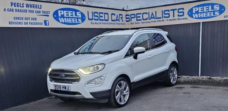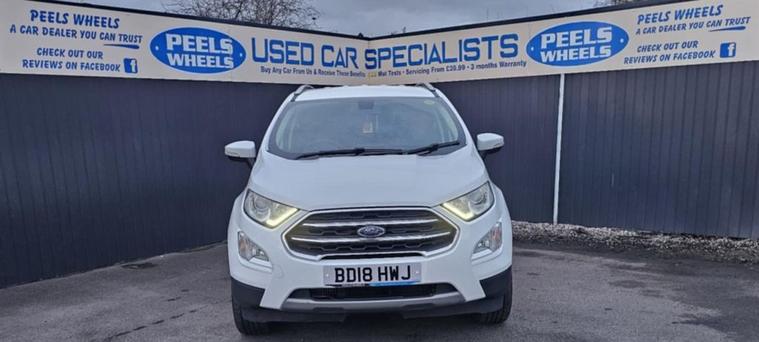 2018 (18) Ford Ecosport * Frozen White, 1.0T EcoBoost Titanium SUV, 5 Door, Petrol, 6 Speed Manual Euro 6 (s/s) (125 ps Edition) 3 Months FREE Warranty, Just Been Serviced By Us, Come And View, New Cambelt/Wet belt, M.o.t January 2027, £195 Per Year Road Tax, Can Be Paid Monthly, Fantastic Sized Boot Space, Air Conditioning, Electric Folding Mirrors, Electric Windows, 2x Keys, Push Button Start, Cruise Control Fitted, Automatic Lights, Under Wing Mirrors Lights, USB/ AUX / 12 Volt Sockets, Xenon Headlights, DRL Running Lights, Media System With Satnav, Bluetooth, Mobile Apps, Cd Player, Alloy Wheels, Perfect Family / First Car, Only Group 12 Insurance, Part Exchange Welcome, Test Drives All Welcome, Finance Available, See Our Links Below To Apply, Credit And Debit Cards All Welcome, ** WE ALSO OFFER DELIVERY ALL OVER THE U.K ON ALL CARS ** CHECK OUT ALL OUR REVIEWS ON FACEBOOK AND GOOGLE, SEARCH:- PEELS WHEELS MORECAMBE READY TO DRIVE AWAY SAME DAY, CHECK OUT OUR REVIEWS ONLINE, GREAT PRICES OFFERED ON PART EXCHANGE, Apply Here For Finance:- https:/ dealer's website OR HERE https:/ dealer's website To view our full stock list please visit our website MORE CARS ARE ON THERE. dealer's website Call us today - 01524804618, Come see us - PEELS WHEELS, MORECAMBE, LA33AY
