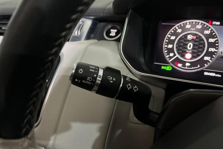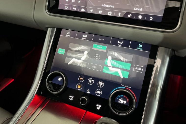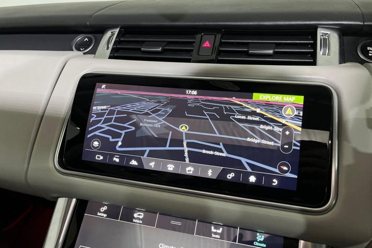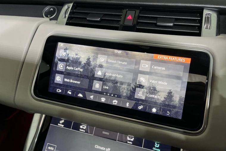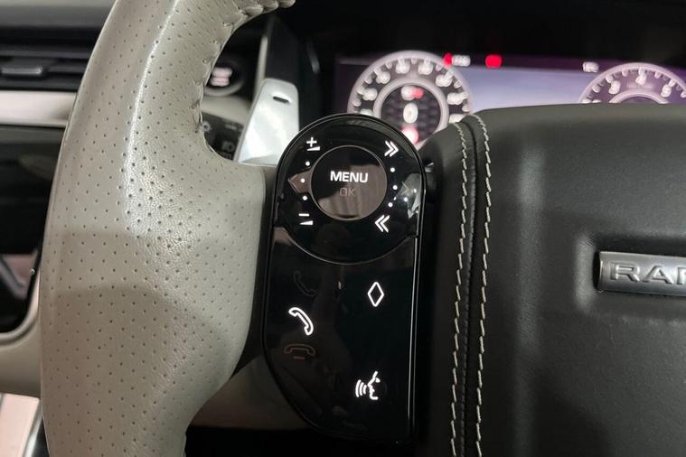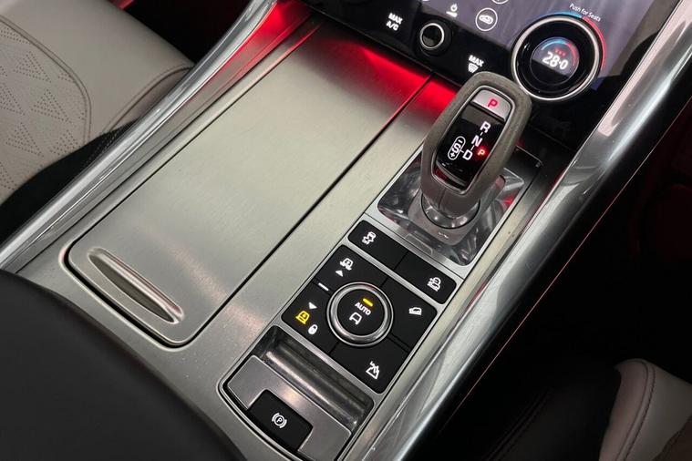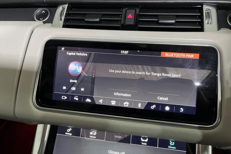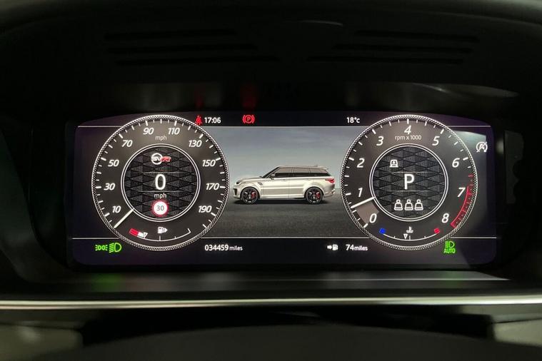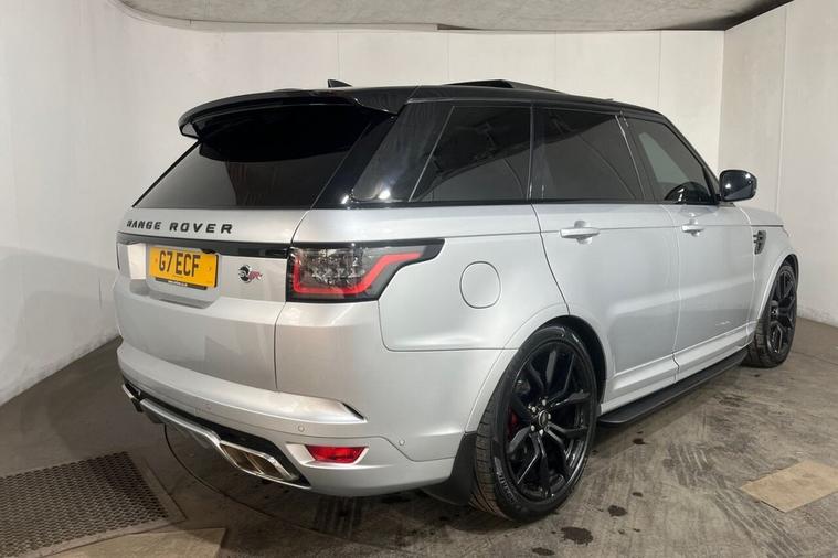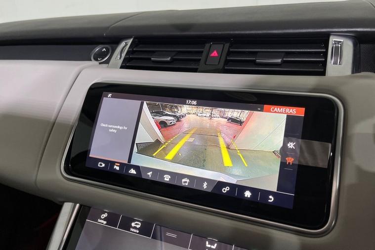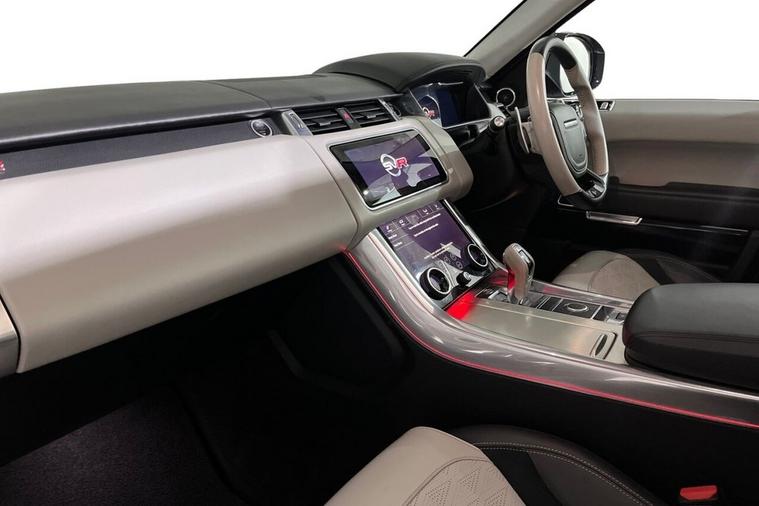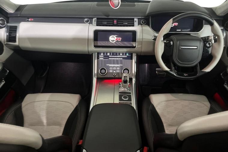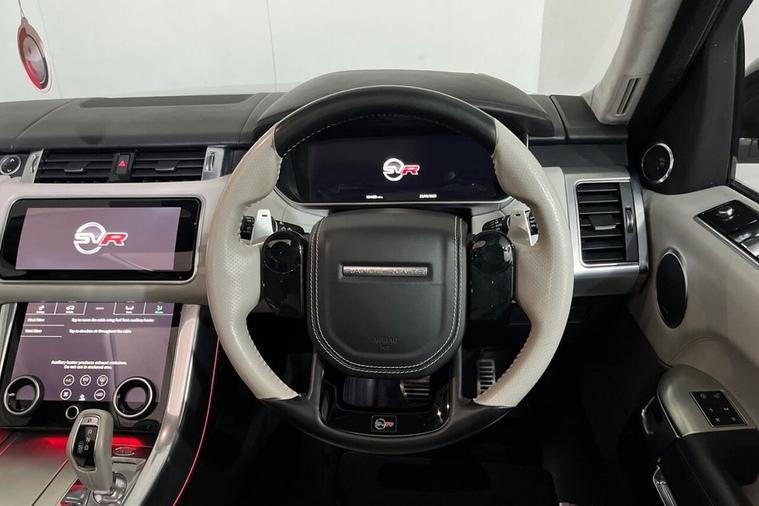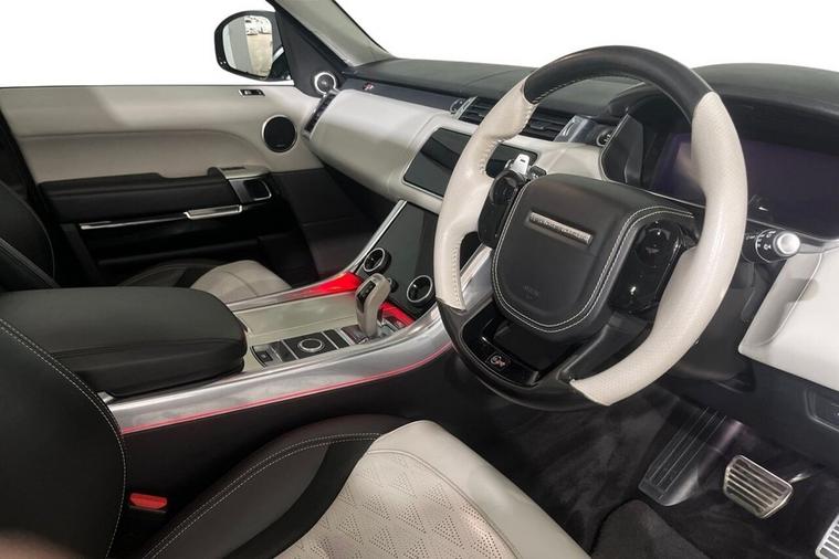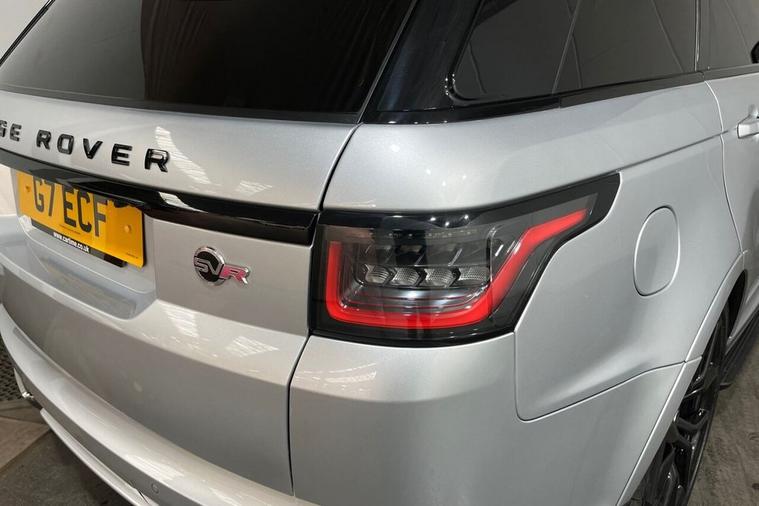 This 2019 Land Rover Range Rover Sport is offered in the high-performance SVR trim. The vehicle is powered by a 5.0L petrol engine and features a four-wheel drive drivetrain, meeting Euro 6 emission standards. The vehicle's history has been checked and is clear. The SVR trim includes automatic headlights, ensuring visibility in varying conditions, and a Meridian Surround Sound System, delivering an immersive audio experience. Manoeuvring is made easier with the rear-view camera, and the inclusion of front and rear recovery eyes enhances its practicality, complemented by a tow bar. The three-zone climate control ensures comfort for all occupants.