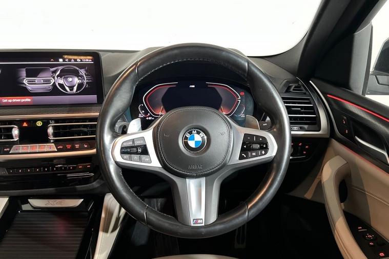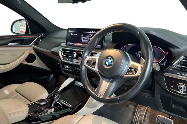 This 2022 BMW X4 20d M Sport is a superb example, having had only one owner from new and boasting a clear vehicle history check. This four wheel drive diesel hybrid model, finished in the desirable M Sport trim, features a Euro 6 compliant 2.0 litre engine. Inside, youll find luxurious Vernasca Leather upholstery in Oyster with Grey Contrast Stitching, complemented by heated front seats for added comfort. Parking is made effortless with front and rear parking sensors, further enhanced by Park Distance Control and a comprehensive parking assistance system. The automatic air conditioning ensures a pleasant cabin environment in all conditions. Experience impressive efficiency with a highlight fuel economy of 49 miles per gallon, alongside low CO2 emissions, making this X4 a more environmentally conscious choice compared to similar vehicles. The generous boot space offers practicality for all your needs, whether for daily errands or longer journeys. This X4 20d M Sport combines sophisticated styling with advanced technology and efficient performance, offering a compelling package for any discerning driver.