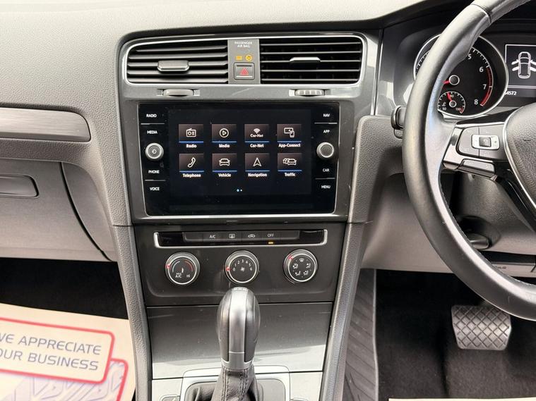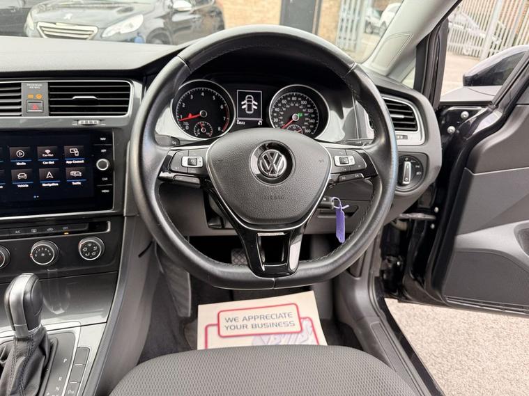2018 Volkswagen Golf 1.5 TSI EVO BlueMotion Tech SE Nav DSG 130 PS Available now at DealDrive Motors. The Volkswagen Golf SE Nav blends everyday practicality with comfort, technology, and efficiency. With DSG automatic transmission, satellite navigation, and a refined petrol engine, its a versatile hatchback ideal for commuting, family life, or long trips. Powered by a 1.5-litre TSI EVO petrol engine producing 130 PS, this Golf delivers smooth, efficient performance with active cylinder management for improved economy. The DSG automatic gearbox ensures seamless gear changes, while Euro 6 compliance makes it fully ULEZ-friendly. Inside, the SE Nav trim provides a high-quality cabin with supportive seats, dual-zone climate control, and a multifunction steering wheel. Technology highlights include satellite navigation, Bluetooth connectivity, DAB radio, and a touchscreen infotainment system. The 5-door design and flexible boot add to its everyday practicality. Everyday usability is supported by front and rear parking sensors, adaptive cruise control, ISOFIX child seat points, and electric windows. Alloy wheels and LED daytime running lights give the Golf a modern road presence. Presented in excellent condition with service history and HPI clear for peace of mind, this Volkswagen Golf SE Nav combines efficiency, technology, and practicality in a dependable hatchback.