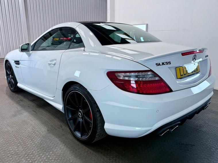 **THIS VEHICLE MAY BE AT OUR 150-CAR STORAGE FACILITY. PLEASE CALL AHEAD TO ARRANGE VIEWING AT OUR WINCHESTER SALES SITE** MOT April 2026. Serviced at 15k, 29k, 44k, 53k, 57k, 59k, 65k, 87k, 96k and 98k miles. A stylish Mercedes-Benz SLK finished in Cashmere white and complimented by a black leather interior providing the driver with the premium Mercedes driving experience. Powered by a 5.5 Litre V8 petrol engine, this SLK certainly packs a punch, combined with an automatic gearbox taking away the time lost in gear changes. Fitted with various features such as 18 inch alloy wheels painted in matt black, panoramic sunroof, air conditioning and air scarf heating technology.