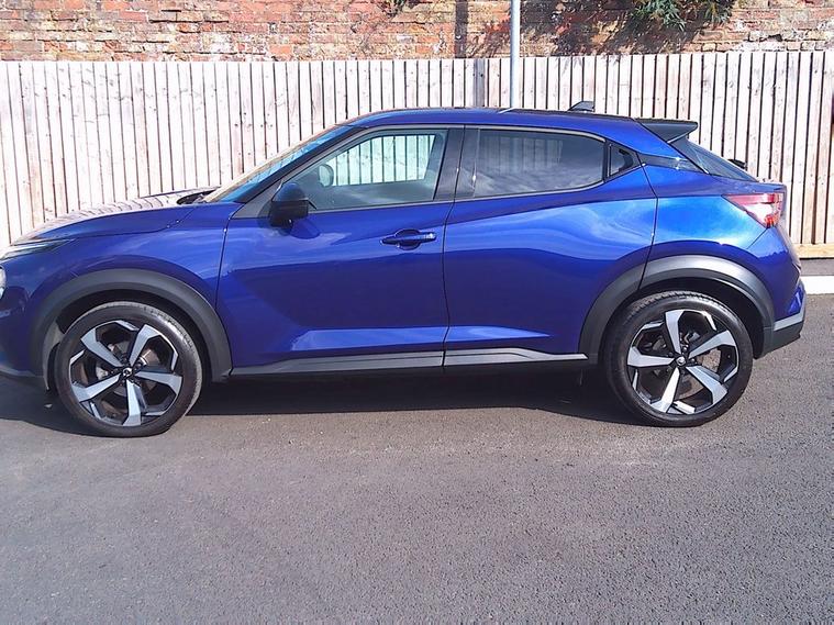 Discover this exceptional 2022 Nissan Juke DIG-T Tekna, boasting remarkably low mileage for its year at just 16, 700 miles. Finished in stunning Ink Blue Metallic with part Black Syntech Leather and is in exceptional condition both inside and out. Specification includes Cruise control and digital climate control with heated front screen and heated front seats. Key features include the convenience of Intelligent Key with Walk Away Lock and Approach Unlock functions, alongside LED headlights for enhanced visibility. Parking is made simpler with front and rear parking sensors with the added benefit of 360 all round Camera and you can enjoy your favourite music through the premium Bose Personal Plus audio system, all while staying connected with USB, AUX, and Bluetooth capabilities. This Juke Tekna stands out with its impressive fuel economy, achieving an excellent 48 miles per gallon, and benefits from low CO2 emissions, making it an economical choice. These highlights demonstrate how this vehicle offers a superior driving experience compared to others in its class, combining advanced technology with efficient performance for your everyday journeys. Our advertised price includes a further sales service and 6 months warranty for complete peace of mind. It has a service/handbook pack and two remote locking keys. We are happy to take your part exchange and we guarantee to offer the best price possible for your car. Thinking of Car Finance? We work with leading companies to source the best deal for you. With a simple, straight forward application, please ask us for a quotation to see just how affordable this car could be. This Nissan Juke is here at the Showroom, available to view and test drive. We have flexible opening hours, so please do give us a call on 01653952409 and we can arrange a convenient time for you. We look forward to hearing from you.